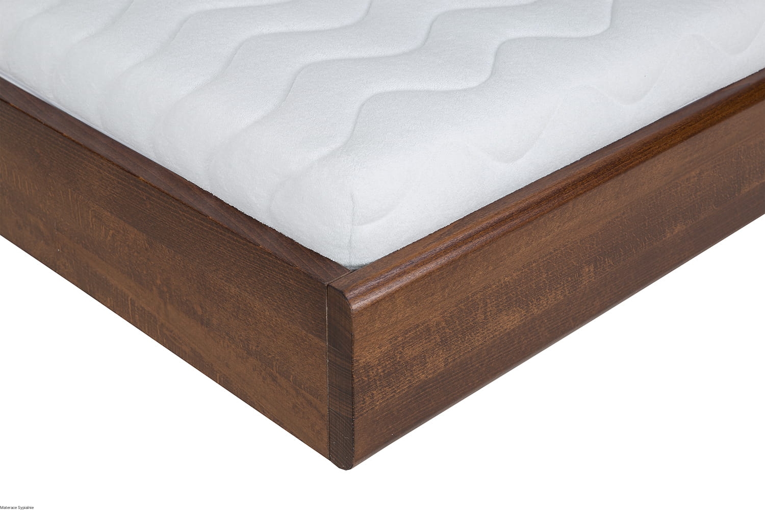 Łóżko LK 188 Drewmax – wykonane z litego bukowego drewna, efekt „unoszenia się” dzięki schowanym nóżkom. Wersje z pojemnikiem lub bez, otwieranie od frontu lub z boku. Elegancja i funkcjonalność.