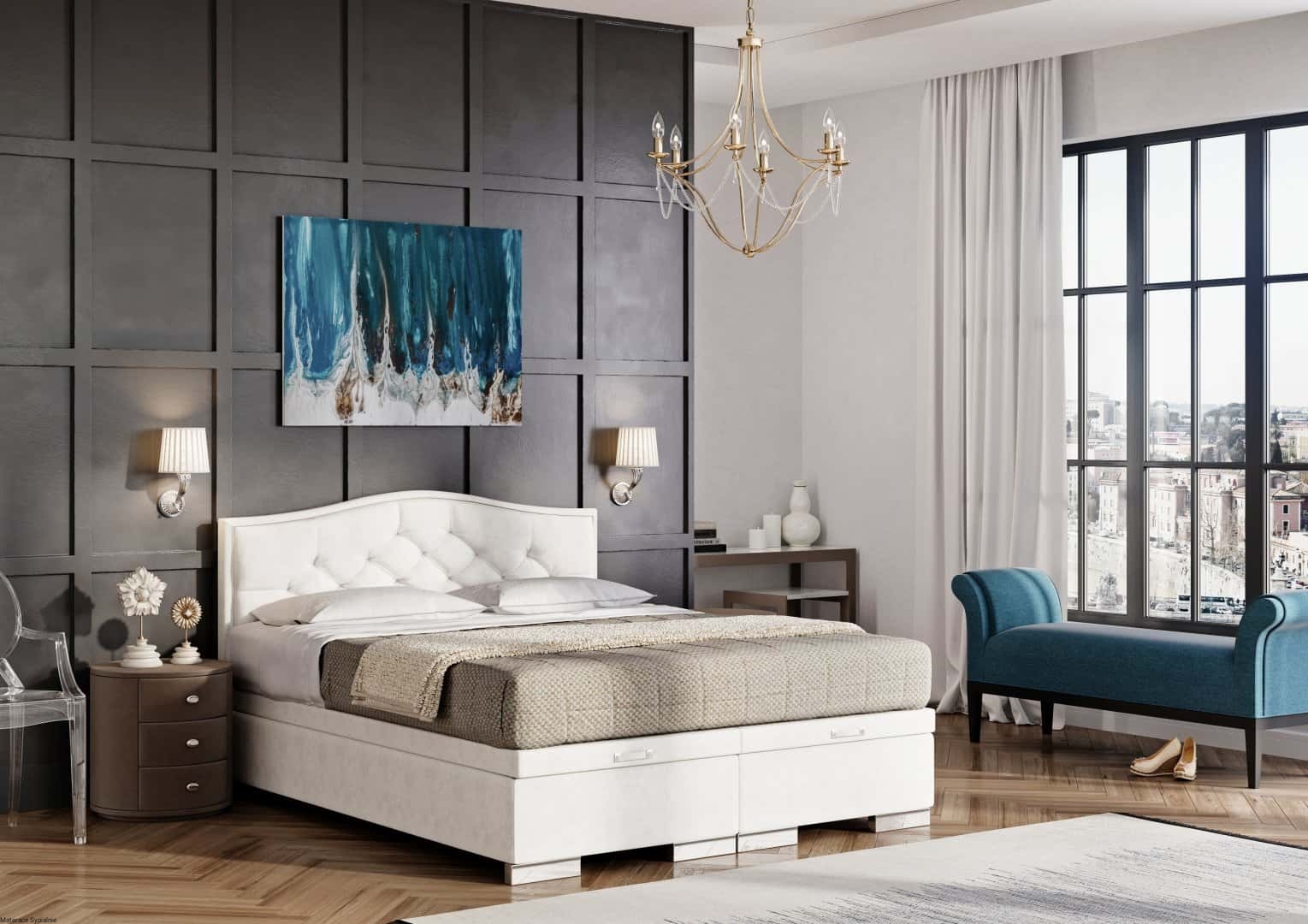 Rama kontynentalna pozwala zmieścić duże łózko do małej sypialni. Takie rozwiązanie nie zajmuje dodatkowych centymetrów. Materac zostaje umieszczony na konstrukcji skrzyni i nie wychodzi poza obrys skrzyni która występuje w wersji z pojemnikiem lub bez pojemnika.