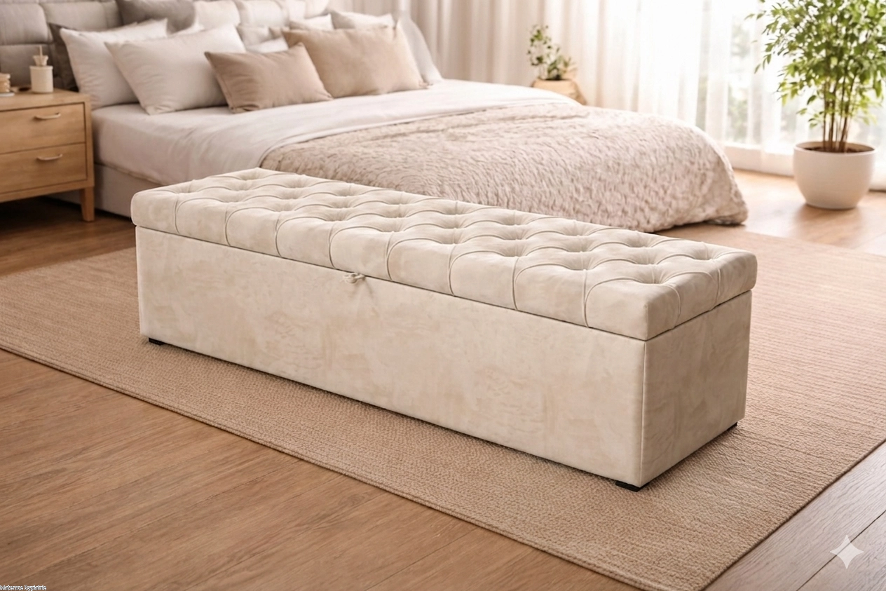 Kufer pikowany tapicerowany – elegancka skrzynia na pościel i funkcjonalne siedzisko