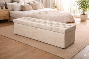 Kufer pikowany tapicerowany to elegancka i funkcjonalna skrzynia na pościel z wygodnym siedziskiem oraz systemem łatwego otwierania.