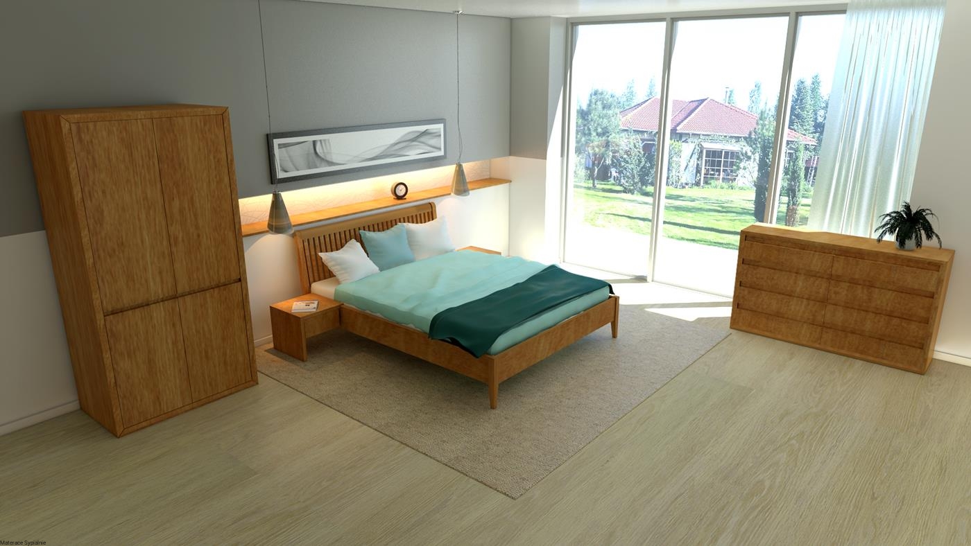 Szerokość całkowita: szerokość materaca + 8 cm (np. dla materaca 160 cm, łóżko ma 168 cm).