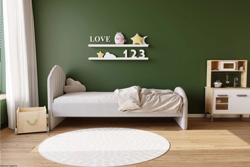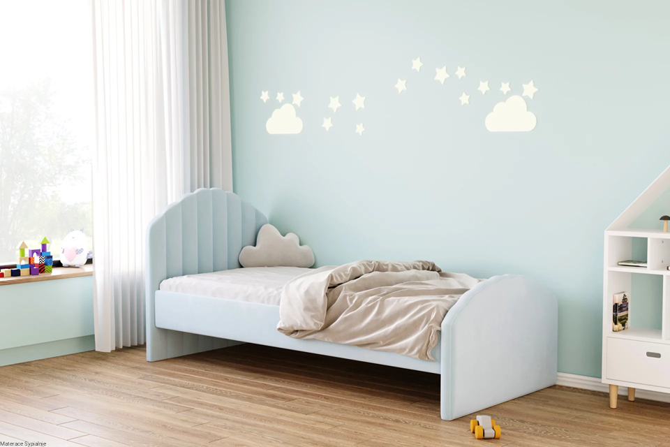 Dziecięce łóżko tapicerowane, składające się z prostej, ale solidnej ramy oraz uroczego zagłówka i zanóżka w kształcie muszelki, to nie tylko idealne miejsce do snu, ale także doskonały element dekoracyjny każdego pokoju dziecięcego.
