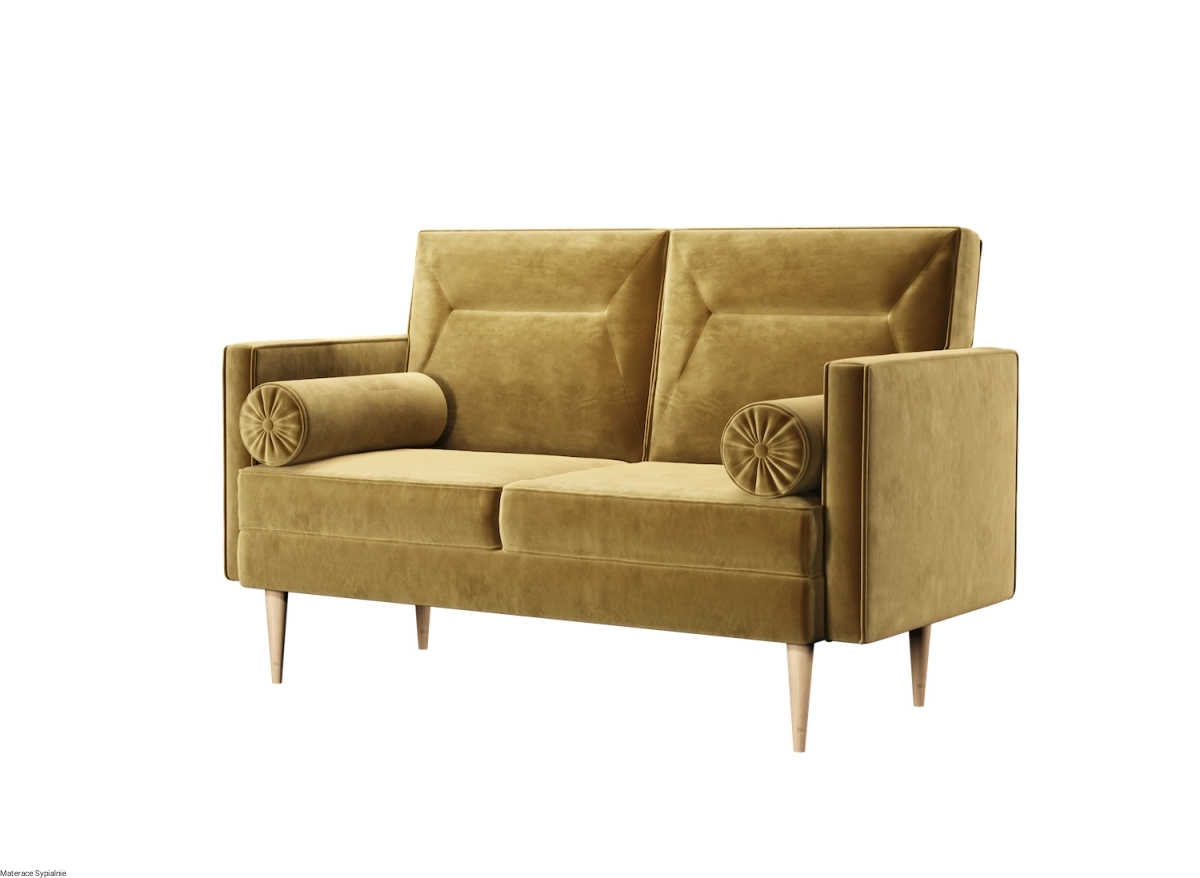 Dwuosobowa sofa o klasycznym wyglądzie, oparta na sprężynach falistych i piance wysokoelastycznej, dostępna w bogatej gamie tkanin. Delikatna dzięki wysmukłym nóżkom. Efektownie prezentuje się zarówno w małych jak i dużych wnętrzach o różnym charakterze i wystroju. Jest idealnym mariażem minimalizmu i designu. Łączy w sobie estetykę, funkcjonalność i wygodę. Na zdjęciu widoczne są poduszki-wałki, które są w cenie.