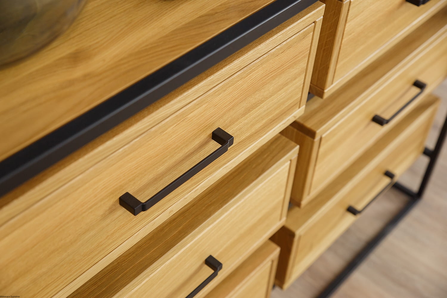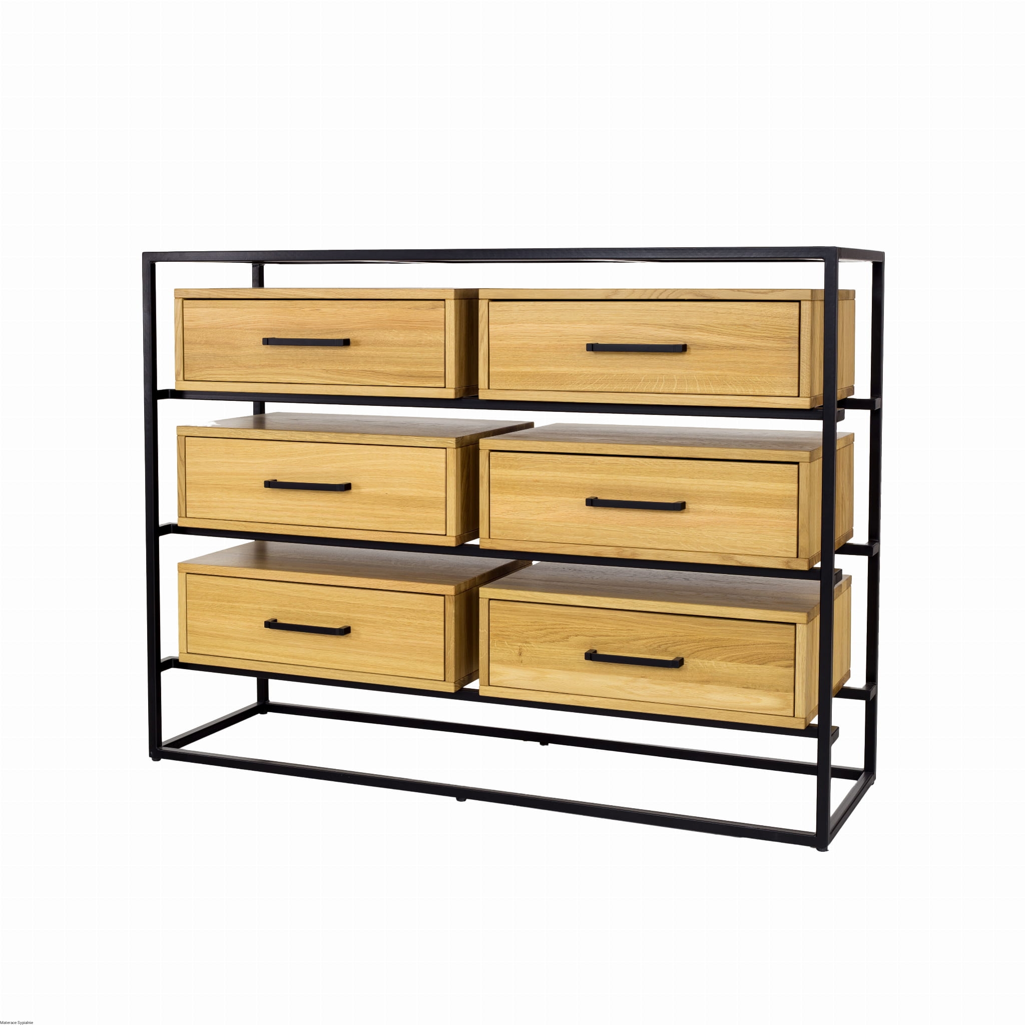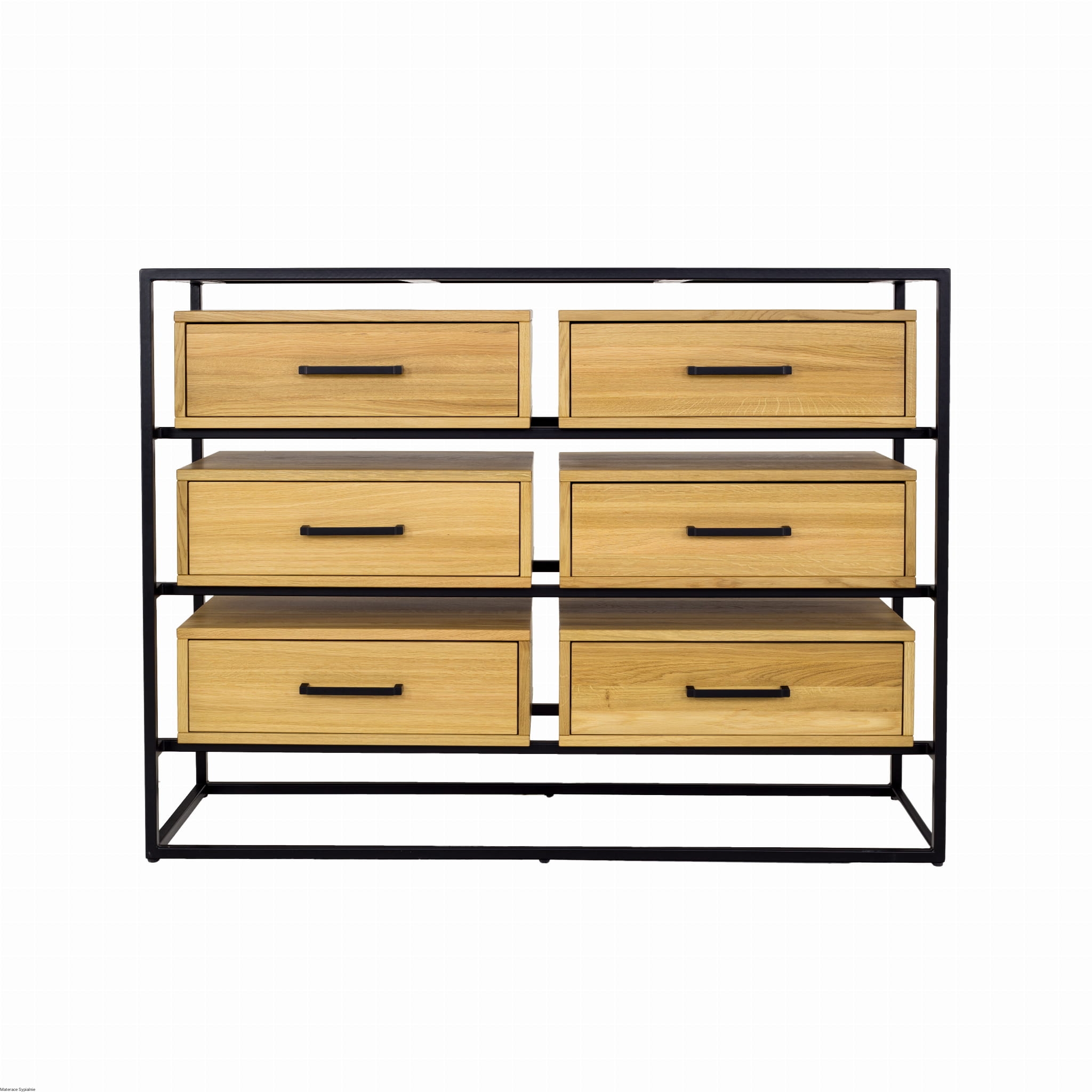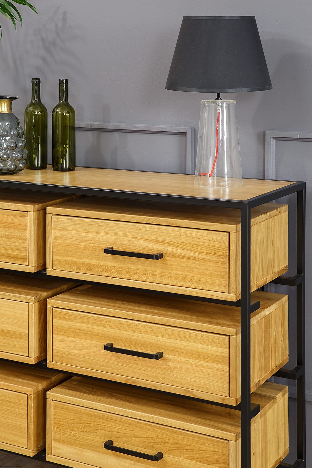 Komoda KD 371 dębowa z czarnym metalowym elementem 6 szuflad