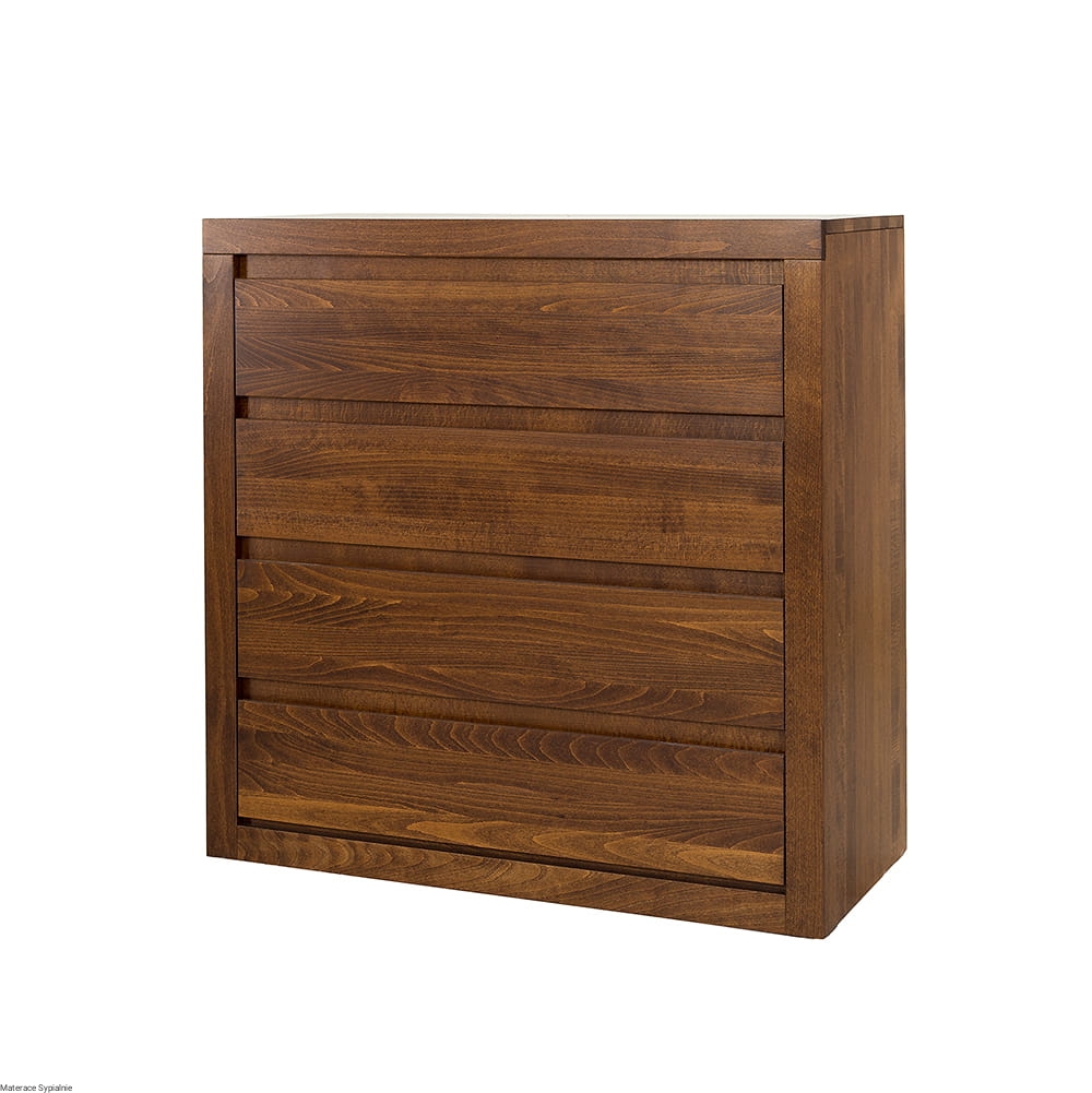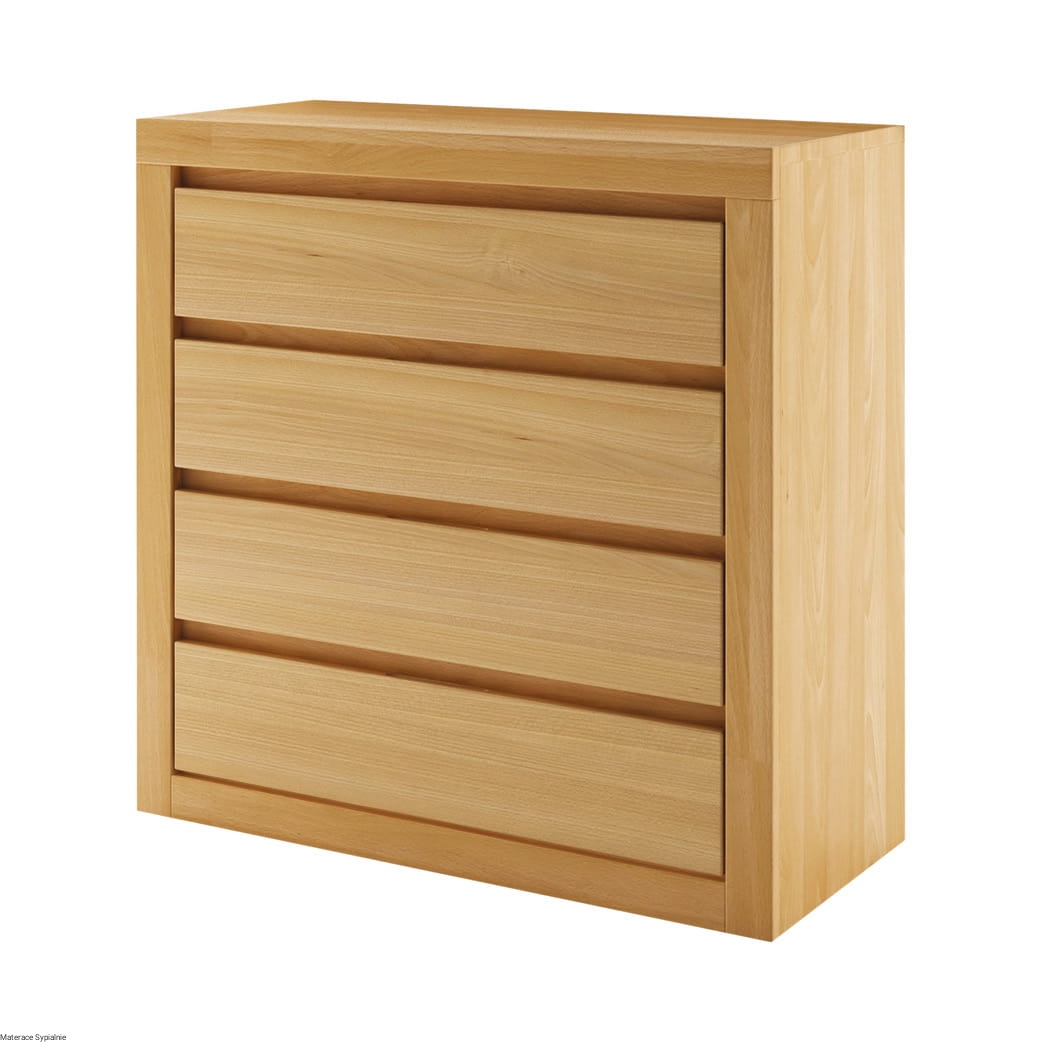 Bukowa komoda KD403 została zaprojektowana w nowoczesnym, minimalistycznym stylu. Pozbawiona widocznych uchwytów, urzeka prostotą formy. Funkcjonalne i pojemne szuflady posłużą do wygodnego przechowywania domowych przedmiotów. Natomiast przestronny blat mebla to idealne miejsce na wyeksponowanie dekoracji lub rodzinnych fotografii.