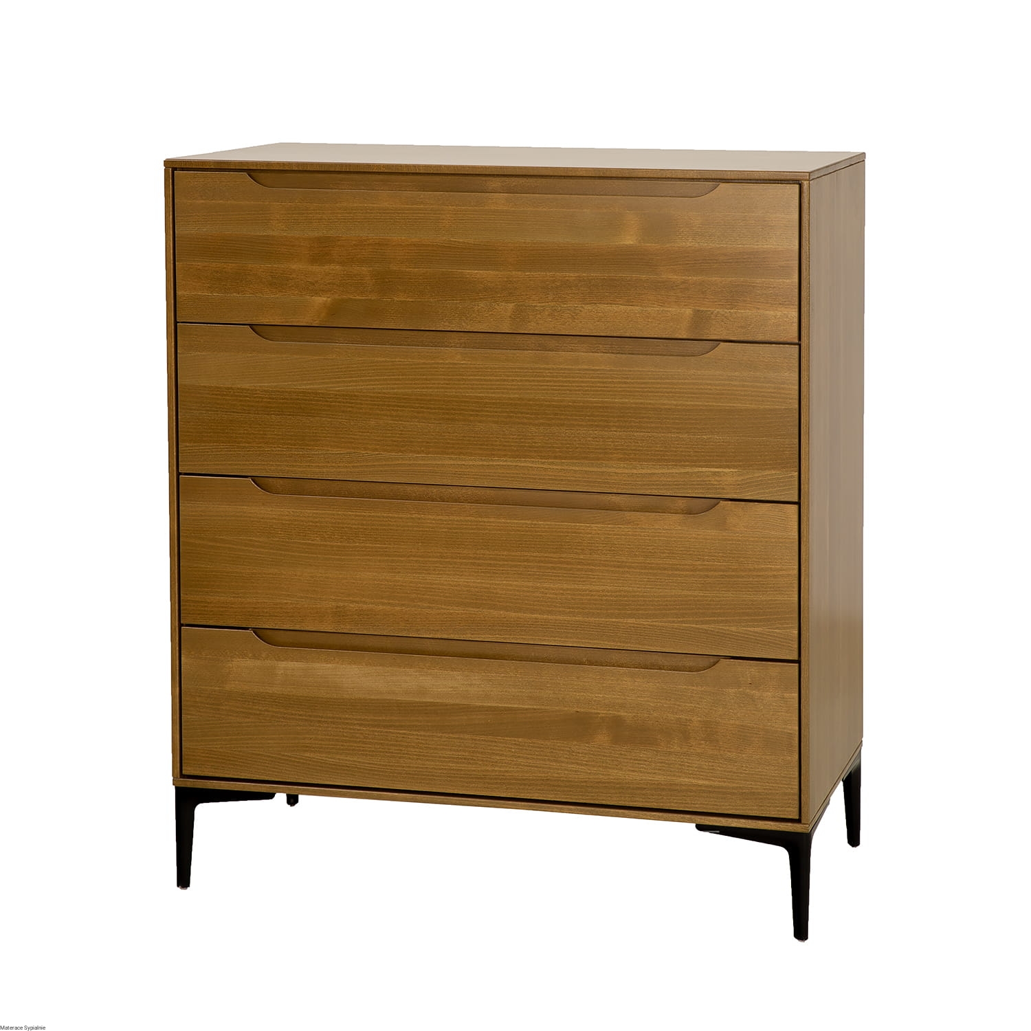 Bukowa komoda KD424 z kolekcji Modern, została stworzona z myślą o miłośnikach nowoczesnego minimalizmu. Mimo prostej formy zachwyca i przyciąga wzrok już od progu. Solidne, pozbawione zbędnych zdobień fronty dopełniają subtelne, wycięte w drewnie uchwyty, tworzące system otwierania i zamykania. Wyposażona w pojemne i funkcjonalne szuflady idealnie sprawdzi się do przechowywania licznych domowych bibelotów. Jej atutem jest też duży, bukowy blat, na którym pięknie prezentować się będą rodzinne pamiątki lub fotografie. Komoda osadzona została na niewielkich drewnianych nóżkach. Istnieje jednak możliwość dokupienia aluminiowych nóżek o wysokości 1 cm lub 10 cm, co zmienia charakter mebla i dodaje mu uroku.