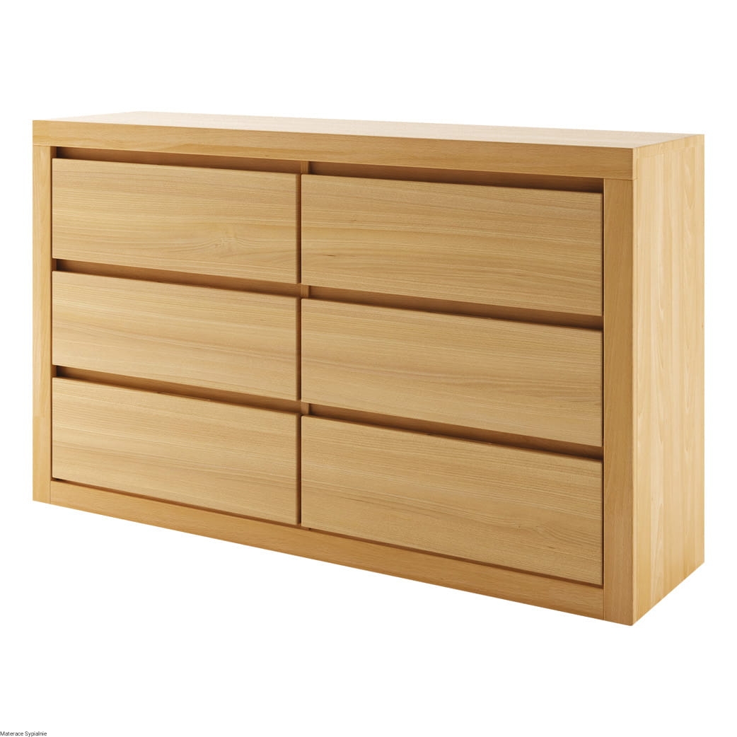 Bukowa komoda KD412 została zaprojektowana w nowoczesnym, minimalistycznym stylu. Pozbawiona widocznych uchwytów, urzeka prostotą formy. Funkcjonalne i pojemne szuflady posłużą do wygodnego przechowywania domowych przedmiotów. Natomiast przestronny blat mebla to idealne miejsce na wyeksponowanie dekoracji.