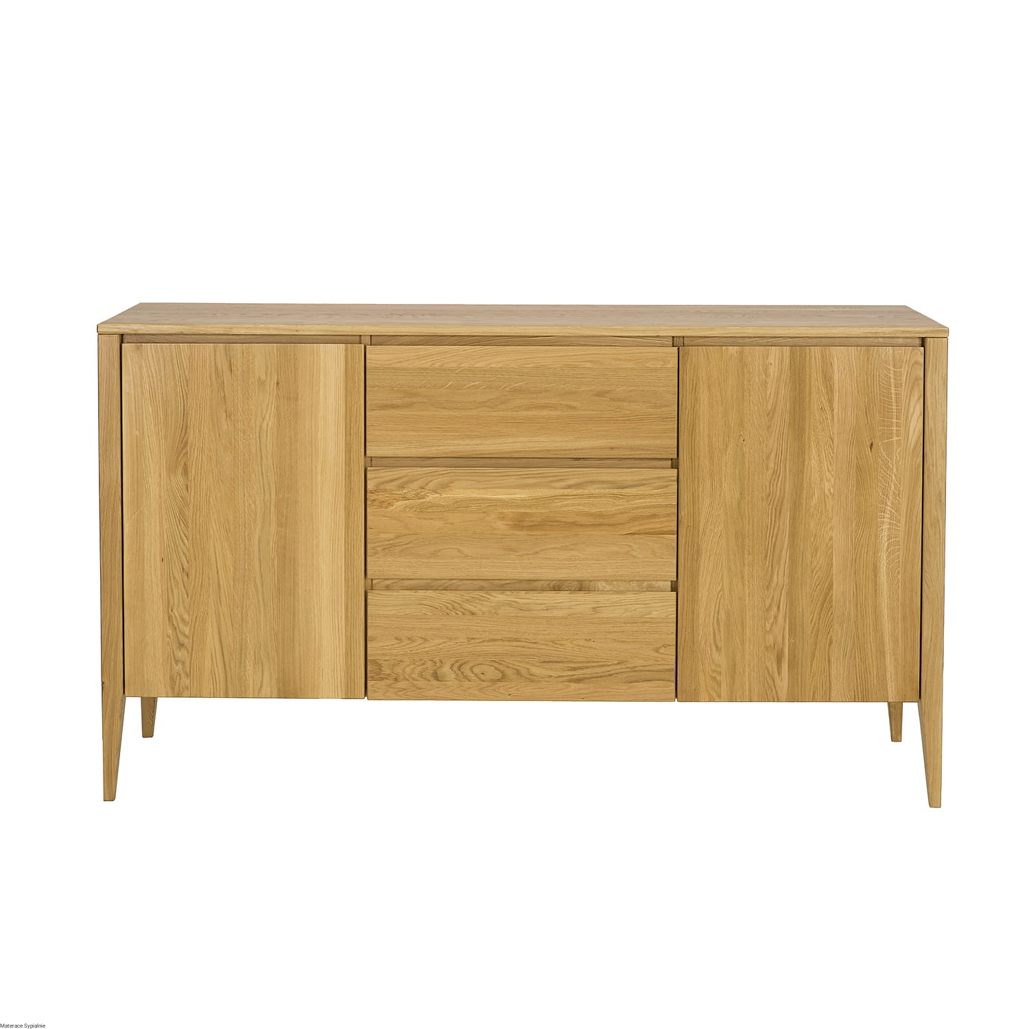 Dębowa komoda KD330 to nowość z kolekcji Retro. To jeden z tych mebli, który przyciąga wzrok już od progu. Jest połączeniem nowoczesności z nutą stylu vintage. Prostą, masywną bryłę mebla osadzono na wysokich nóżkach, co dodało lekkości całej konstrukcji. Piękne bukowe fronty szuflad oraz szafek zdobią subtelne, wycięte w drewnie uchwyty, tworzące nowoczesny system otwierania i zamykania. Całości dopełnia duży, drewniany blat, który posłuży do eksponowania rodzinnych zdjęć lub pamiątek.