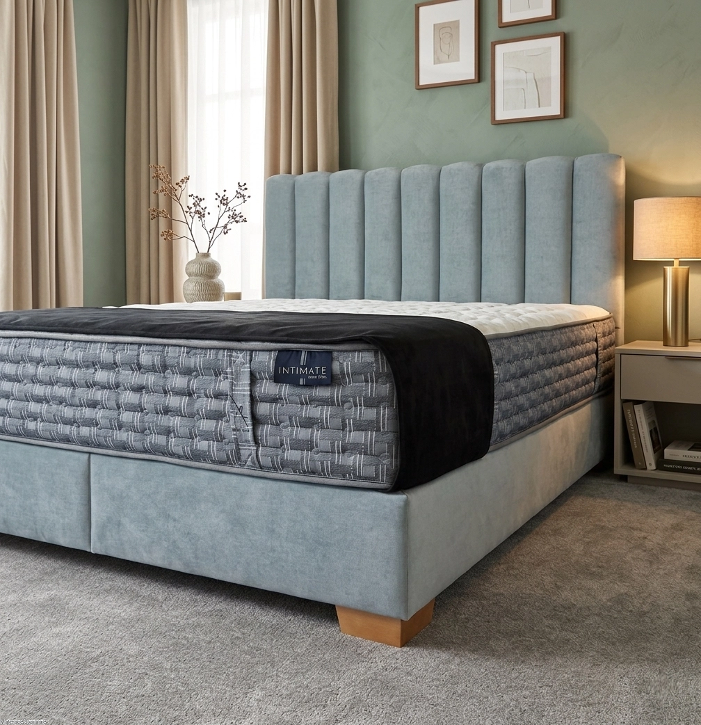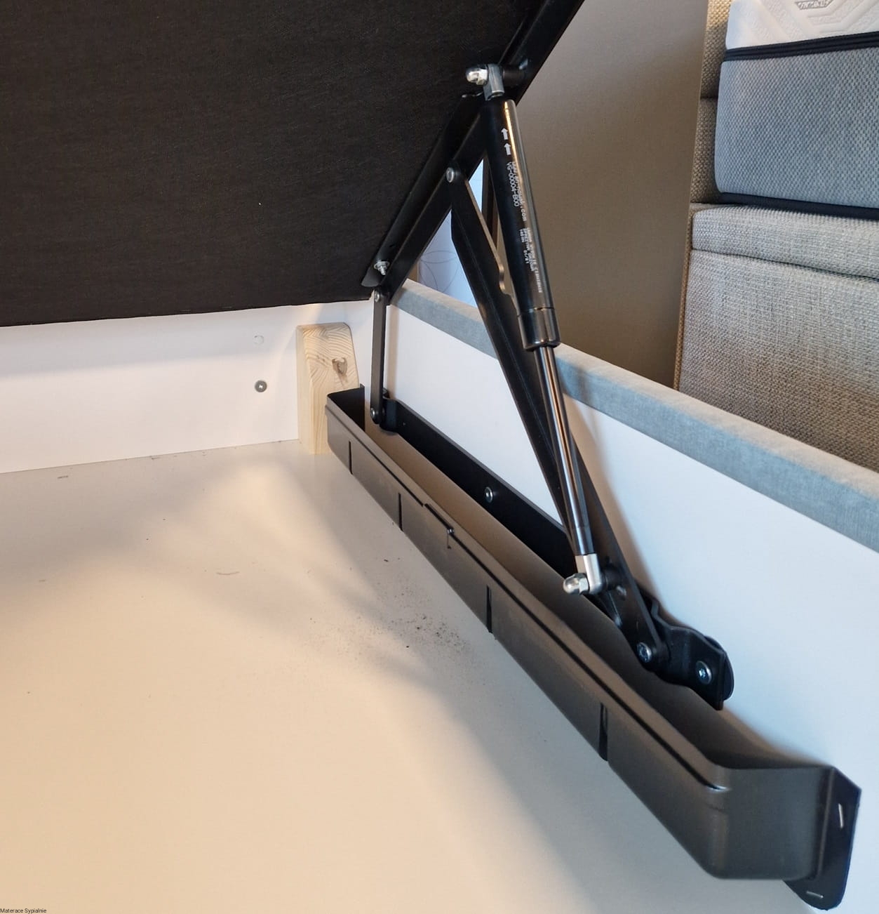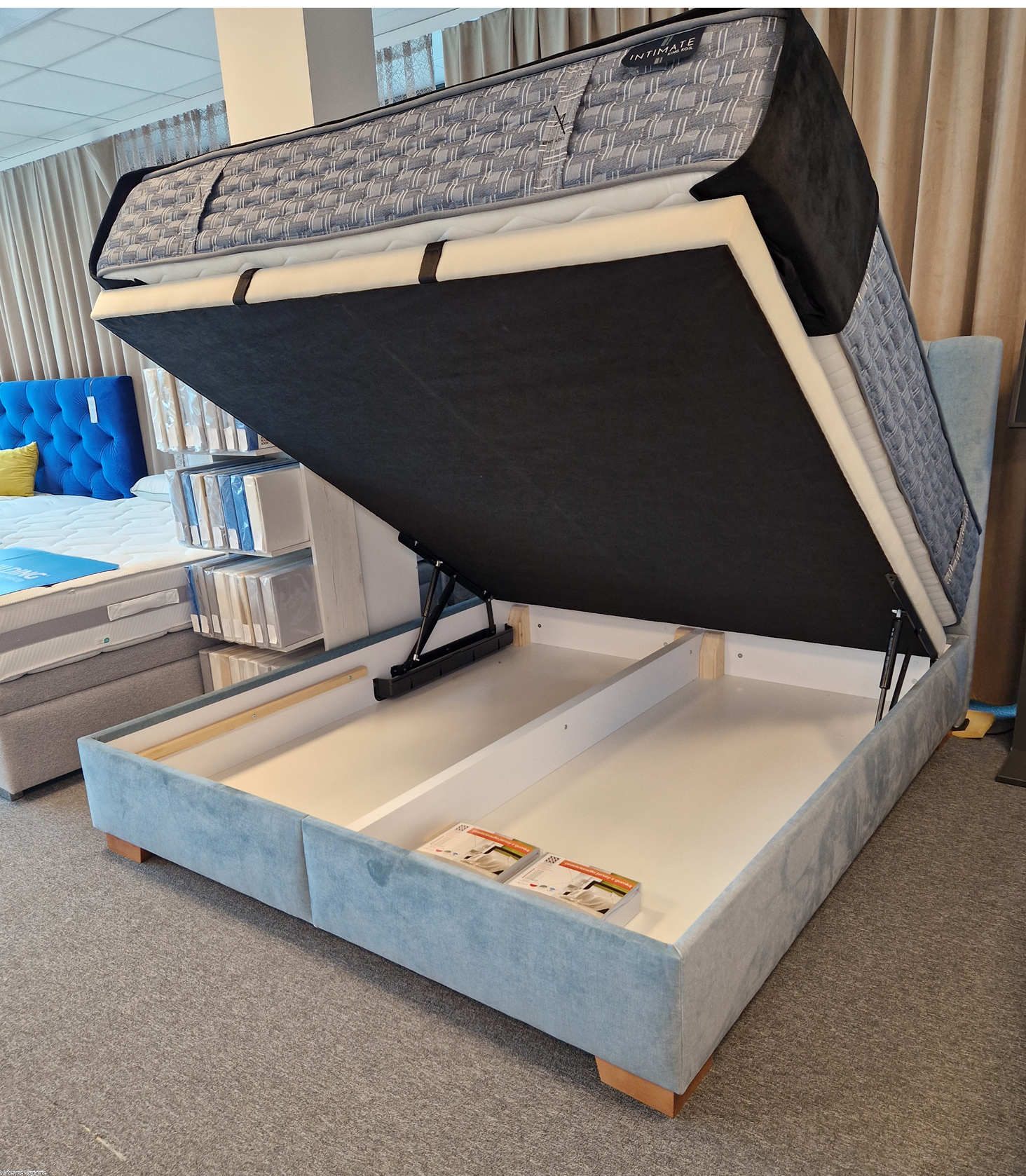 Rama bez obramowania nie zajmuje dodatkowej przestrzeni. Dodatkowo łóżko w wersji z pojemnikiem na pościel zostało wyposażone w dwa duże pojemniki z miejscem do przechowywania, co spowoduje, że pościel i inne rzeczy uzyskają dodatkową powierzchnię. Wysoki zagłówek pikowany w stylu al.’a biszkopty, to przytulny wygląd jednocześnie wygodne oparcie się plecami podczas wieczornego wypoczynku.