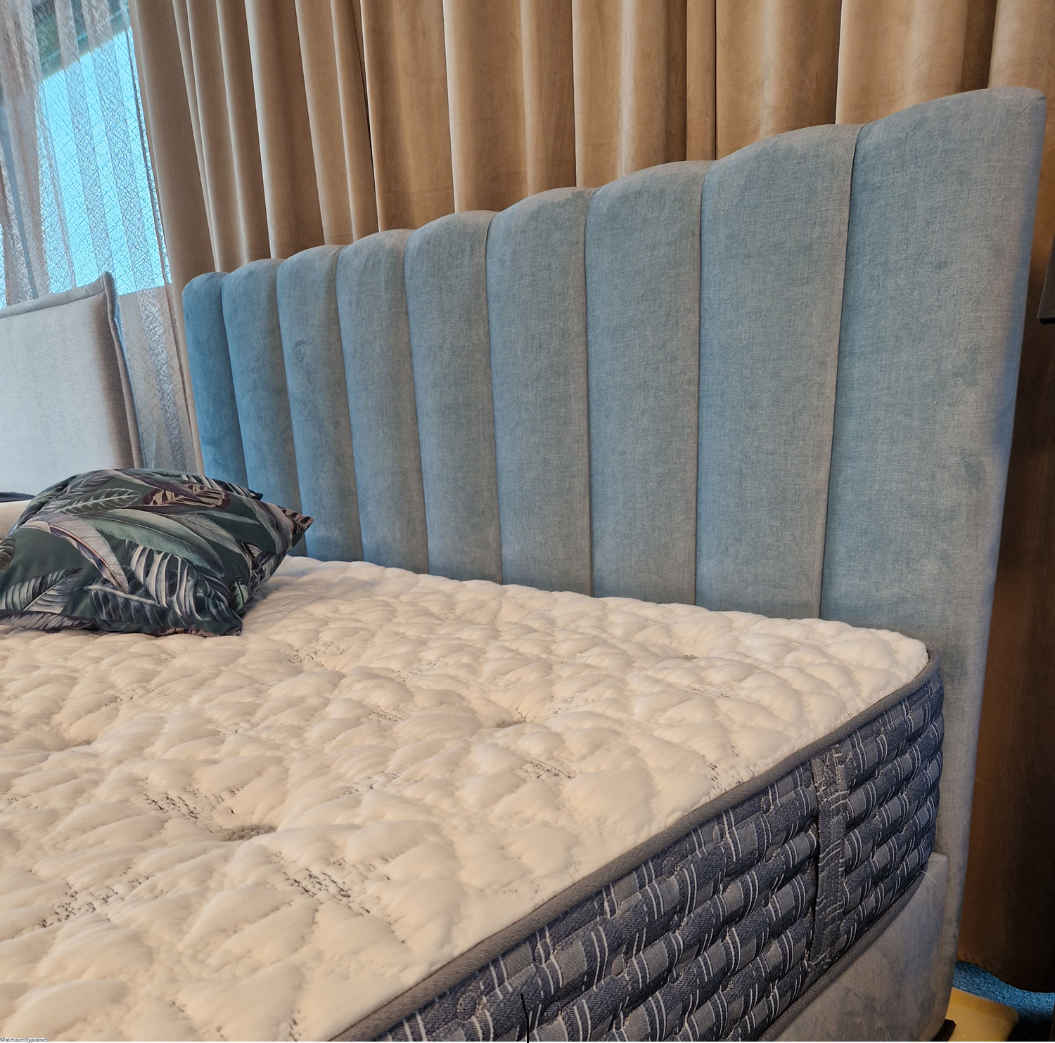 Łóżko dostępne do wyboru w tkaninach tapicerskich. Łóżko zostało wyposażone w nóżki o wysokości 8 cm ale jest możliwość także obsadzenia łózka na ślizgach / na podłodze.