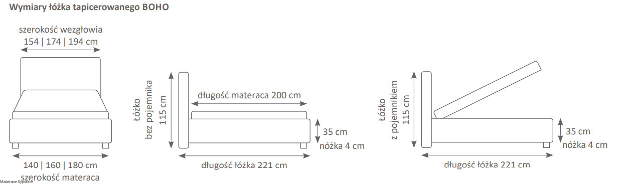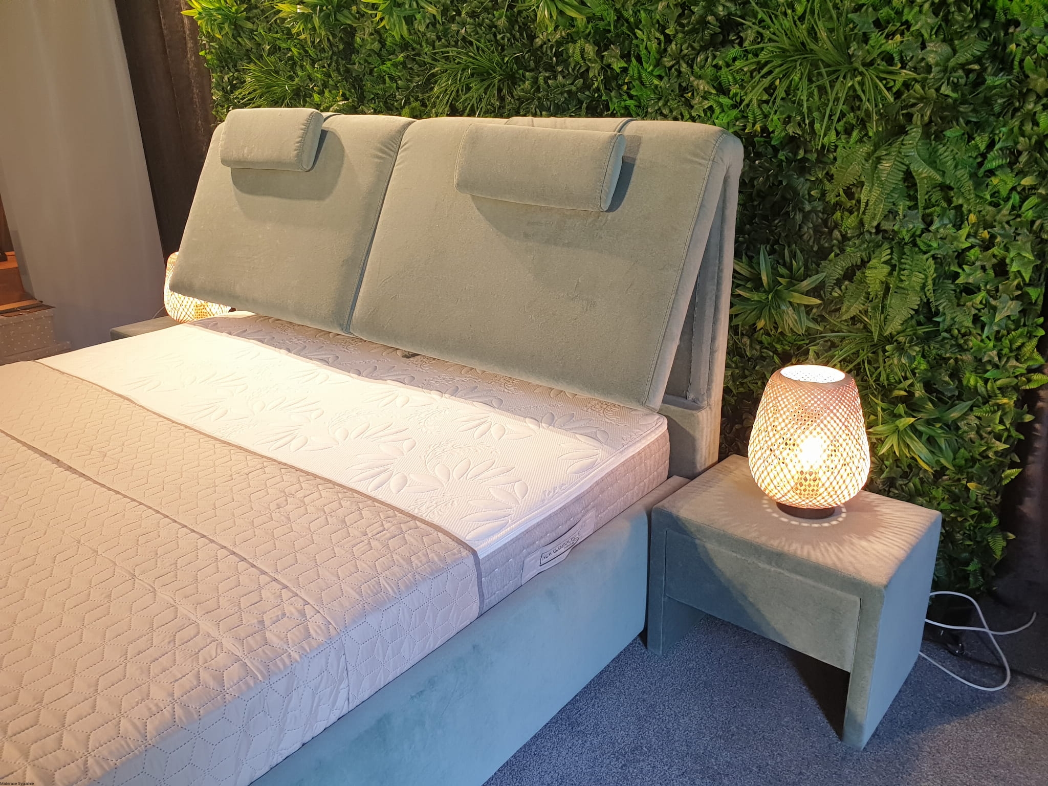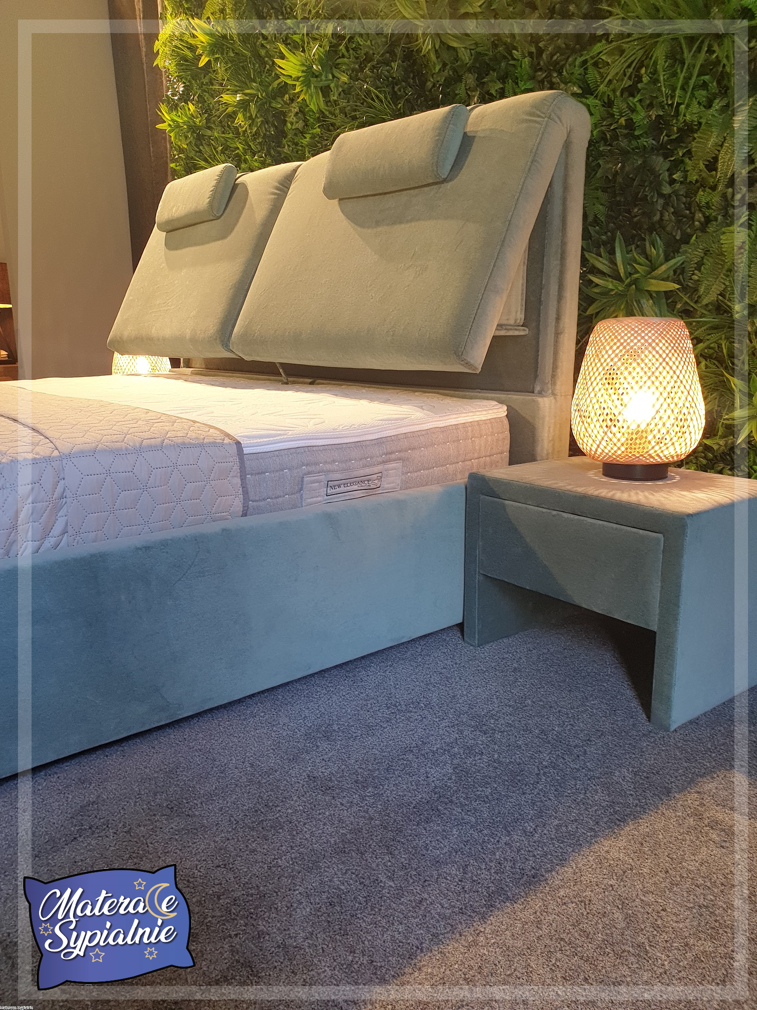 Łóżko najlepiej współgra z materacem o wysokości maksymalnie 22 cm, co zapewnia pełną funkcjonalność ruchomego zagłówka – szczególnie w wersji z pojemnikiem.