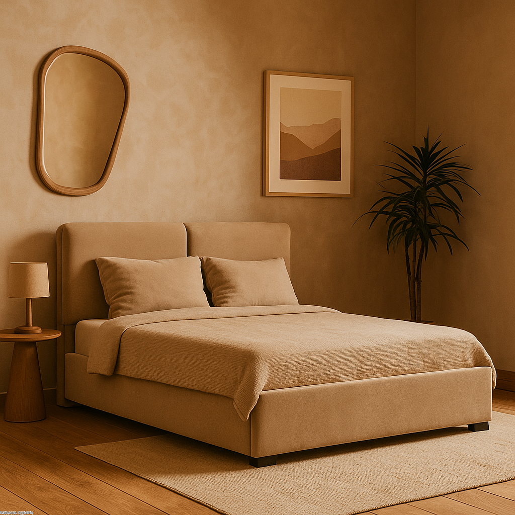 Łóżko Boho dostępne jest w szerokiej gamie obić – od klasycznych tkanin po eleganckie plusze, skóry ekologiczne i naturalne. W salonie obejrzysz całą kolekcję materiałów, a na życzenie wysyłamy bezpłatne próbki prosto do Twojego domu.