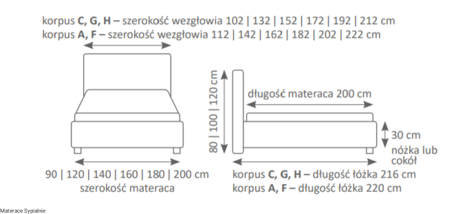 - Szerokość: XX + 10 cm (NP. MATERAC 160 CM ŁÓŻKO 170 CM)