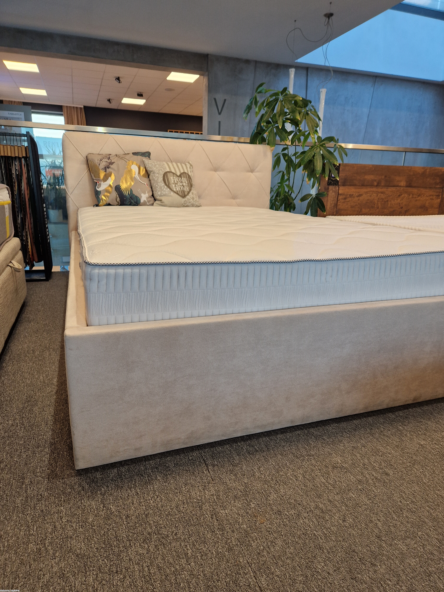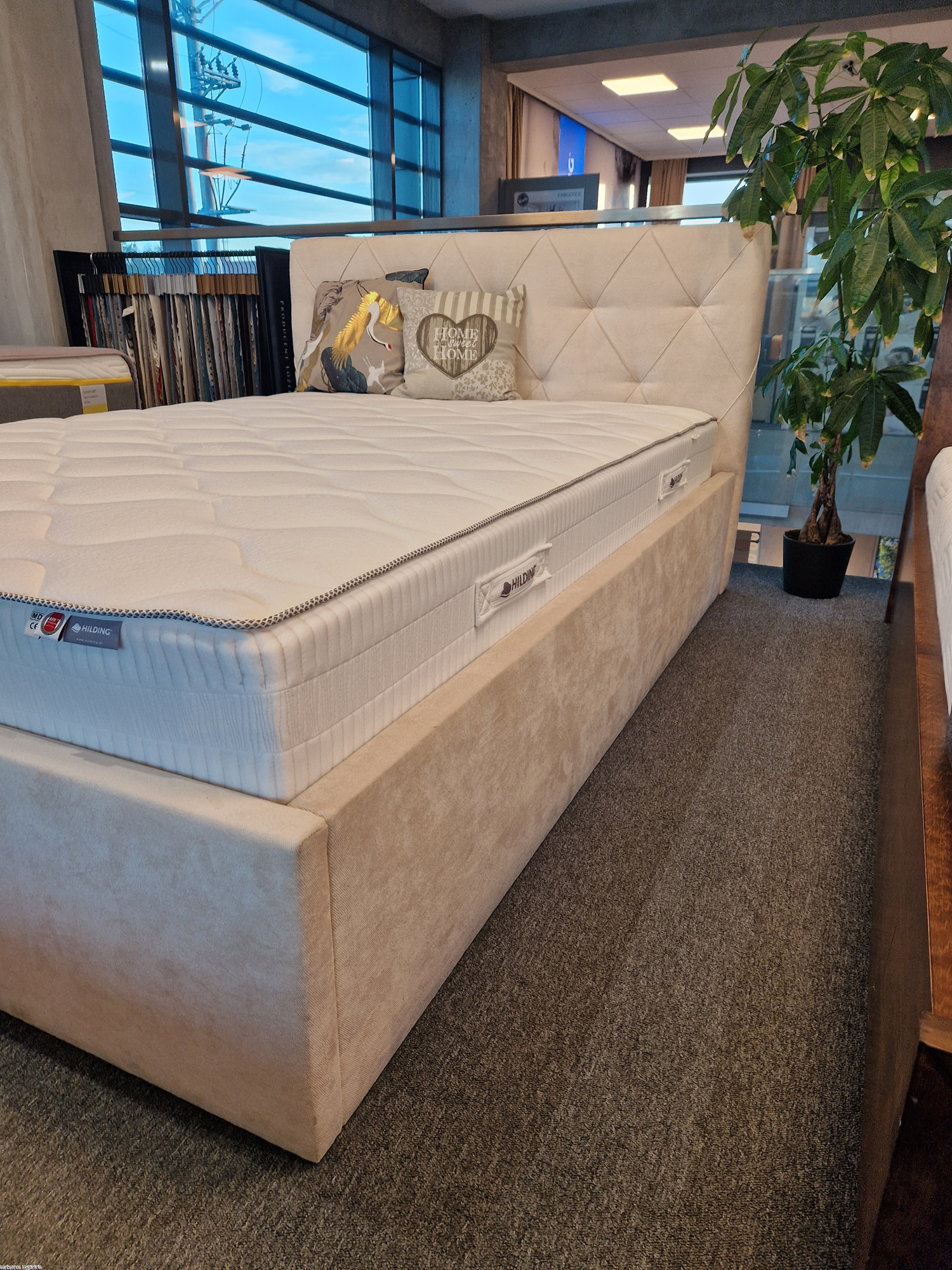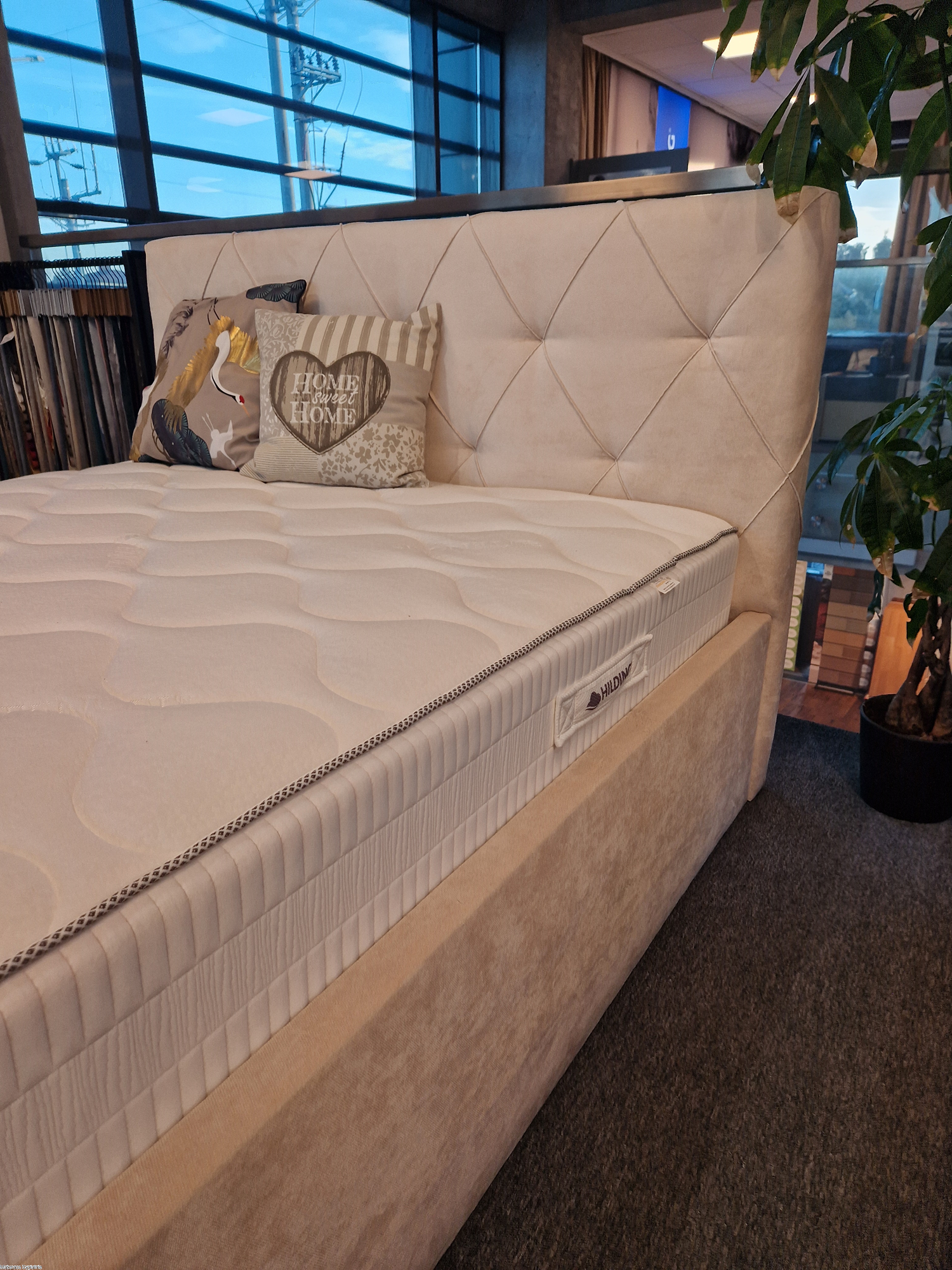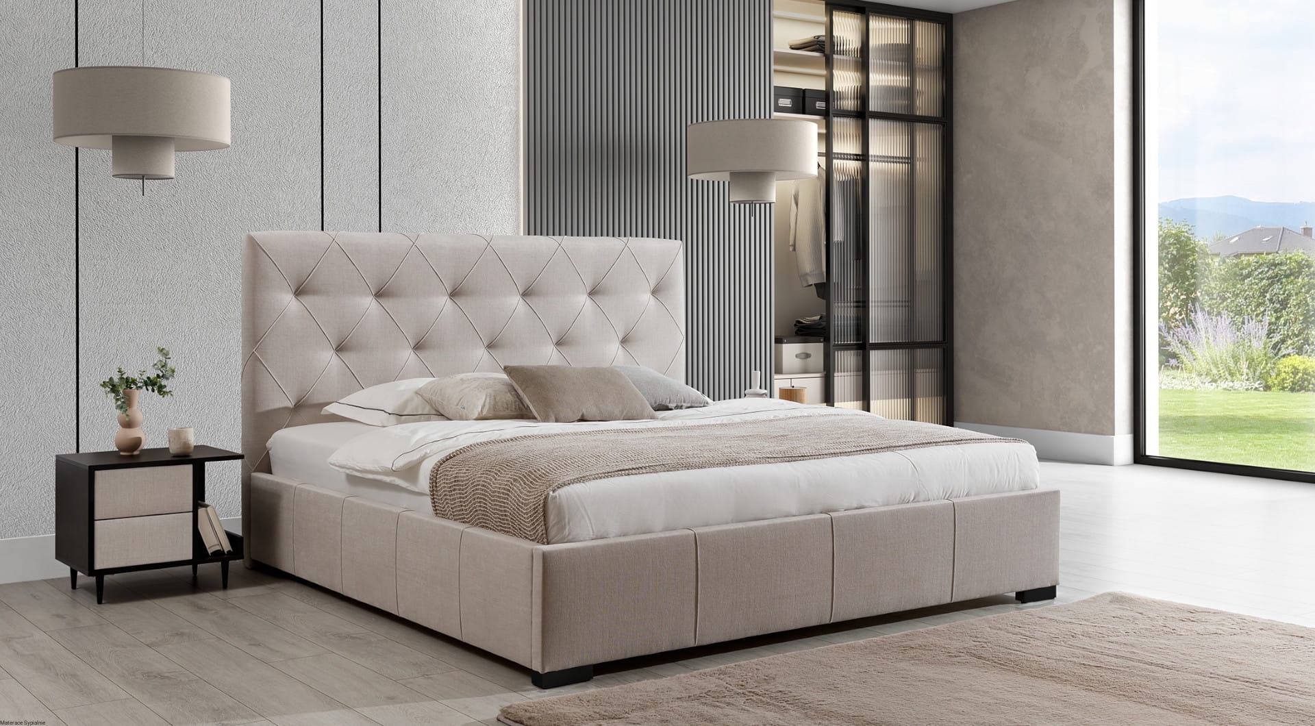 Pięknie uszyte łóżko z lekkim eleganckim wezgłowiem przeszywanym we wzór karo. Model łóżka doskonale psuję do klasycznego, przytulnego wnętrza albo pięknej sypialni w stylu Glamour. Model lóżka doskonale wygląda głównie w tkaninach welurowych lub aksamitnych i gładkich.