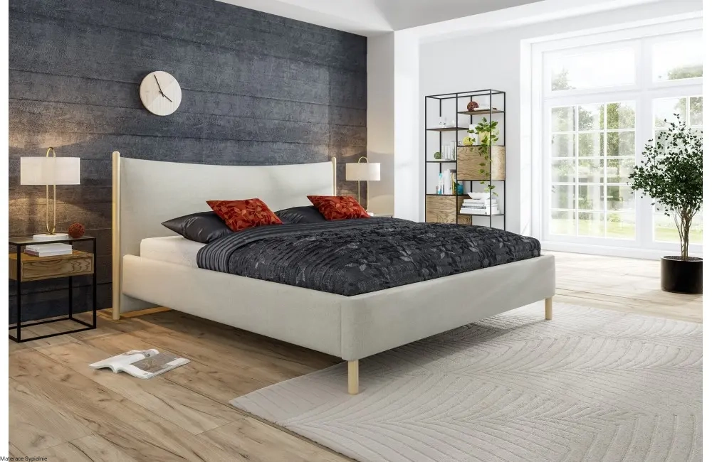 Łóżko Nature tapicerka z elementami drewna bukowego