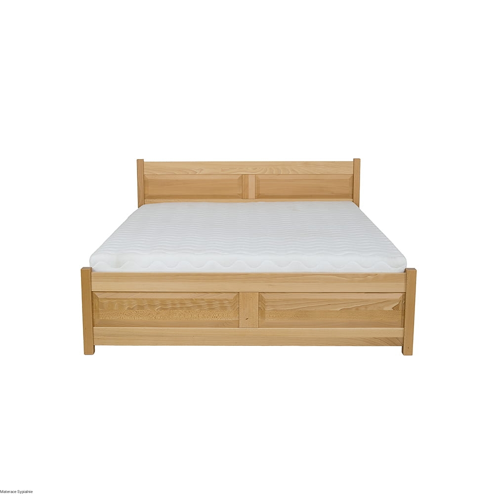 Producent, firma Drewmax, zadbał zarówno o estetykę, jak i funkcjonalność mebla. Zabudowana przednia część łóżka nie tylko nadaje mu solidnego wyglądu, ale również tworzy praktyczną przestrzeń pod ramą – idealną do przechowywania pojemników na pościel czy sezonowe tekstylia.