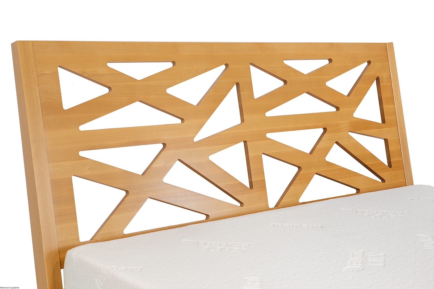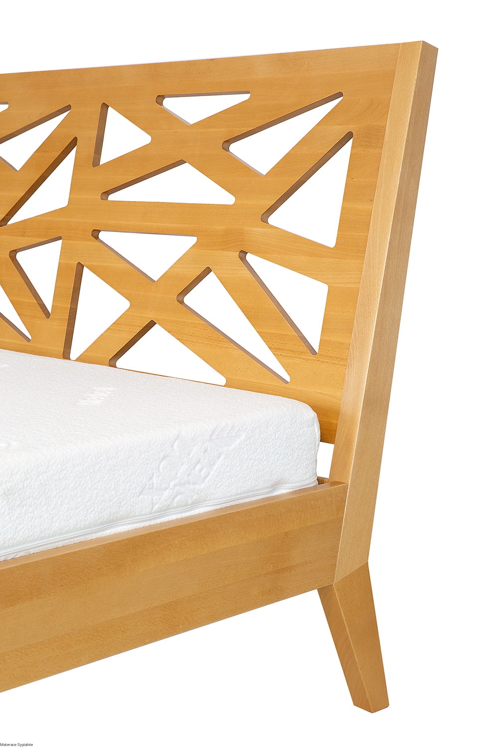 Łóżko LK164 to nowoczesna i nietuzinkowa propozycja dla miłośników oryginalnego designu. Wykonane z litego drewna bukowego, zachwyca nie tylko solidnością, ale i wyjątkowym stylem. Charakterystyczny, ażurowy zagłówek o łagodnie wygiętym kształcie wystaje ponad ramę łóżka, pełniąc zarówno funkcję praktyczną, jak i dekoracyjną. Jego unikalny wzór przyciąga wzrok i doskonale wyróżnia się na tle klasycznych rozwiązań, dodając wnętrzu indywidualnego charakteru. Delikatnie zakrzywione tylne nogi oraz ozdobne, subtelne nóżki z przodu nadają konstrukcji lekkości i podkreślają jej niepowtarzalny styl.
