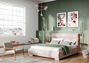 Model idealnie dopasowany do wnętrz, którym niewielki metraż nadaje przytulnego charakteru. Zaokrąglone części sprawiają, że nowoczesne wzornictwo idealnie współgra z klasycznymi elementami. Wzrok przyciąga wyjątkowe wezgłowie, którego wykończenie jest odpowiedzią na najnowsze trendy artystyczne.