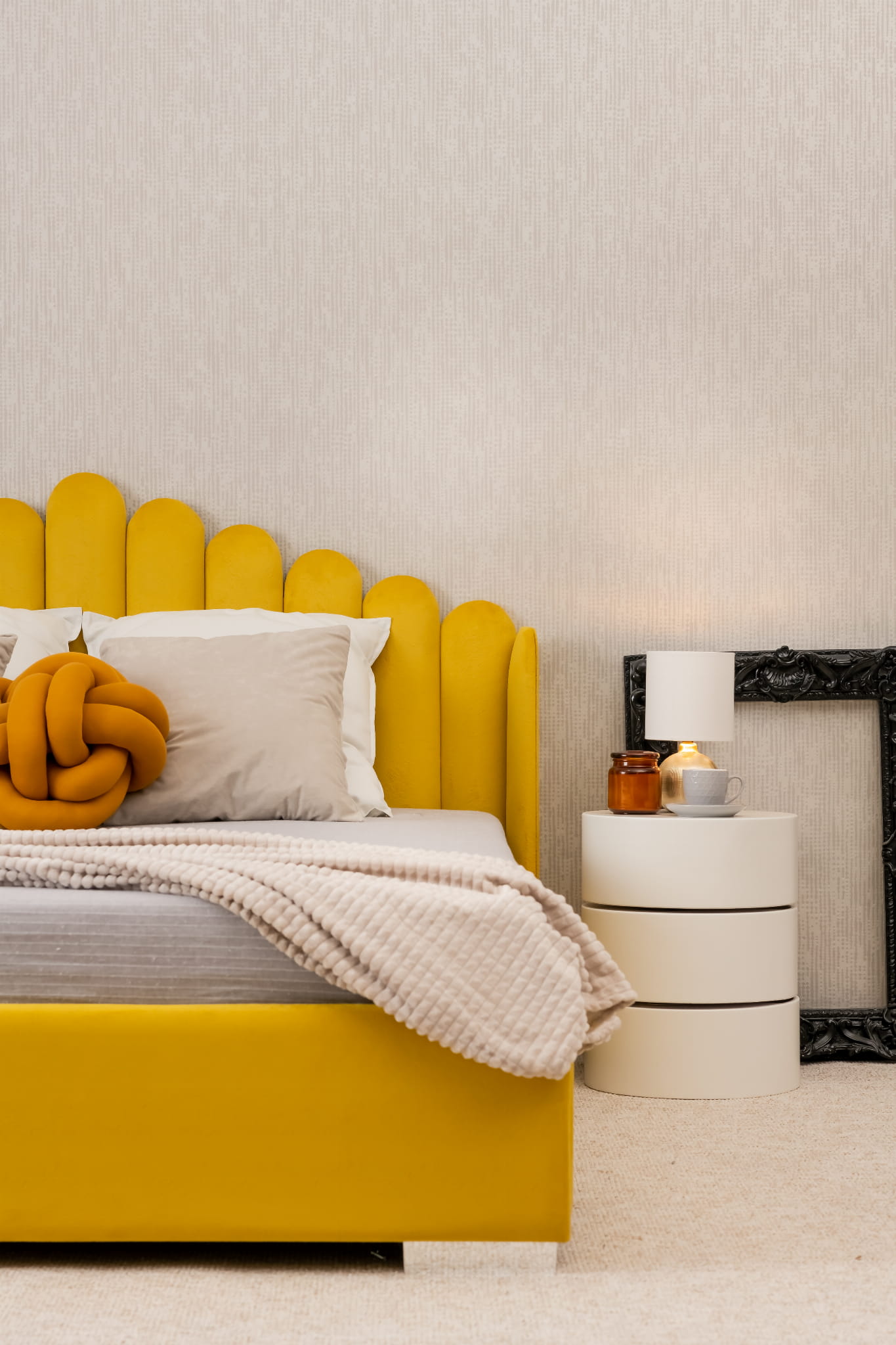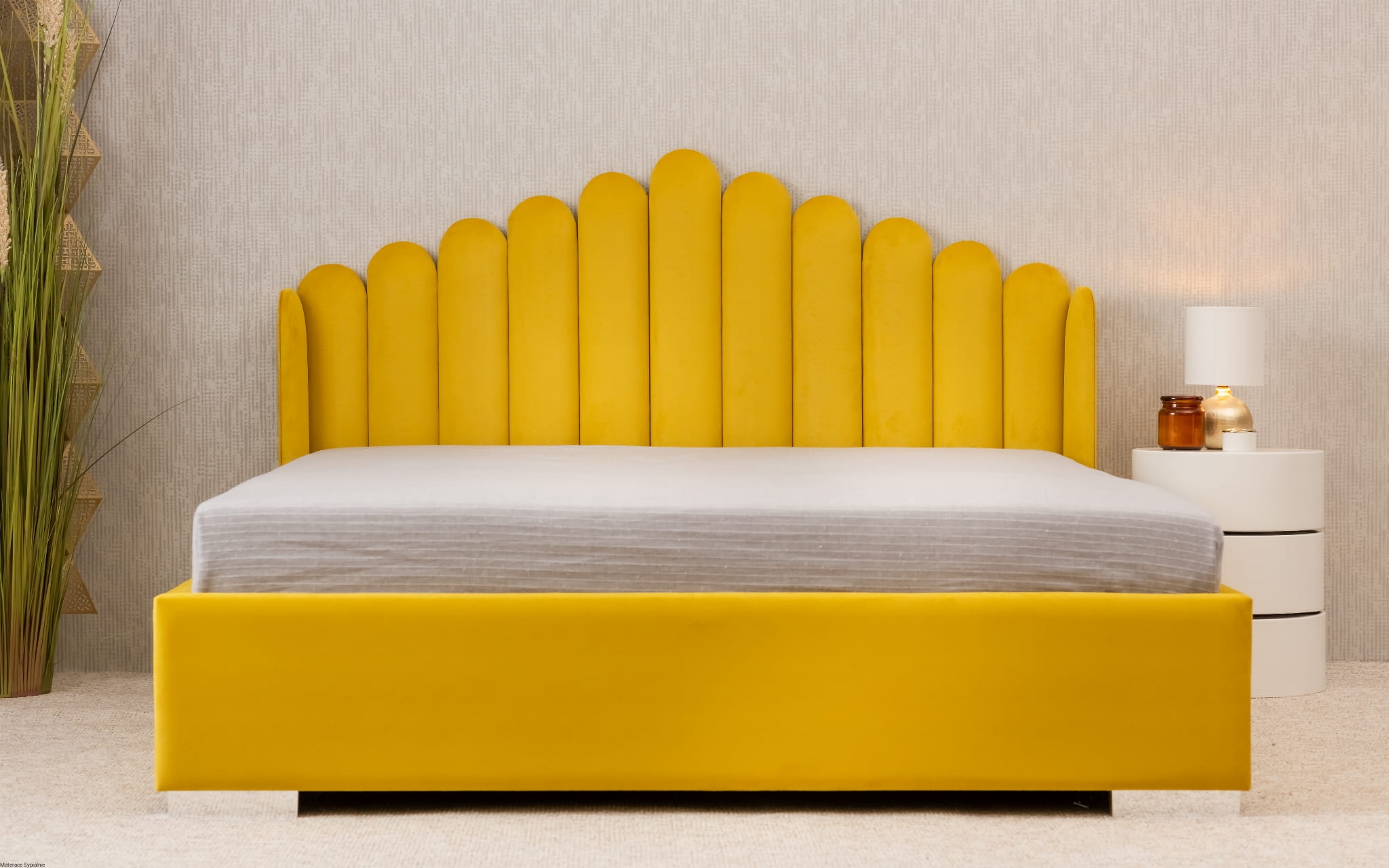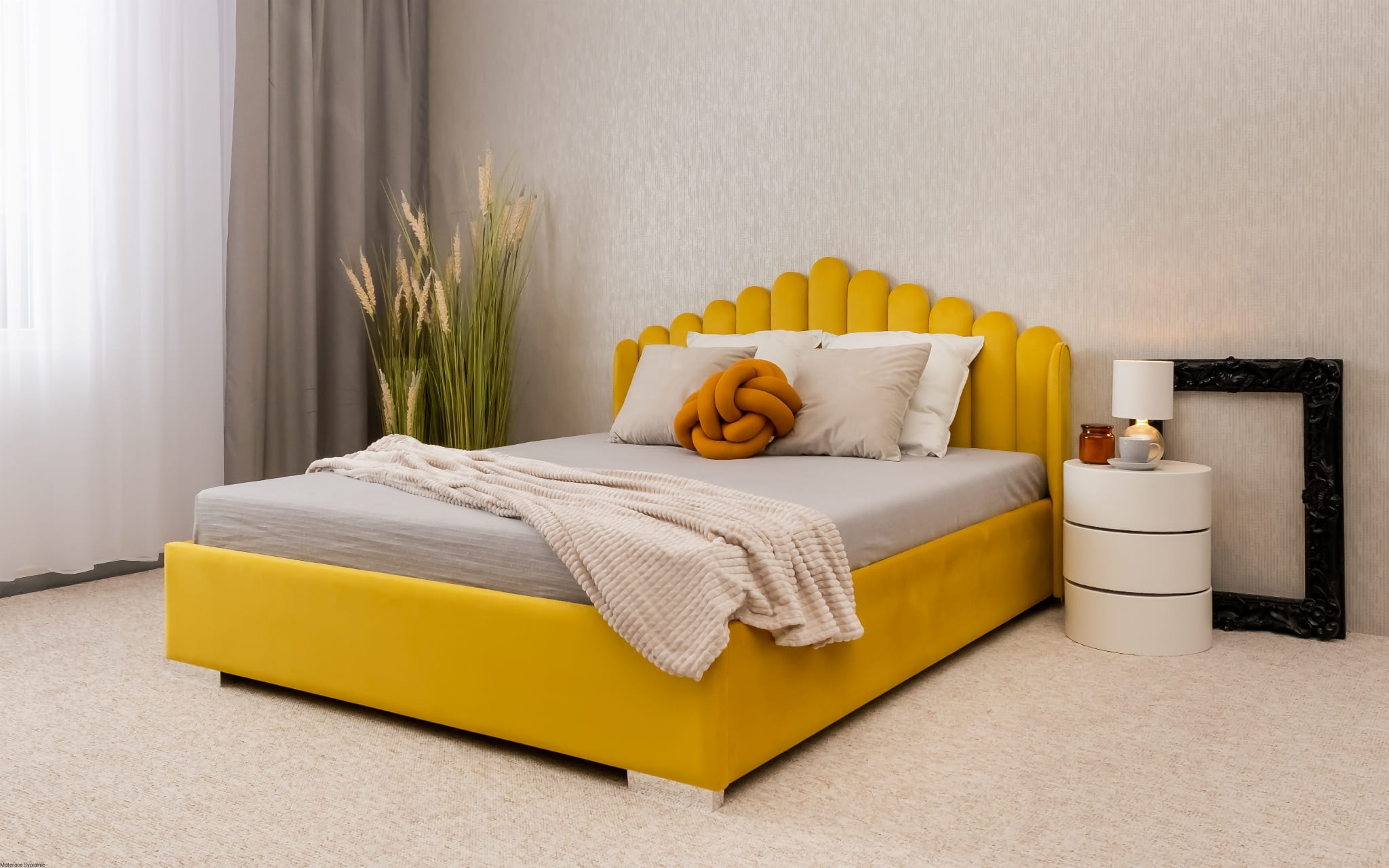 To stylowe łóżko tapicerowane nada sypialni wrażenia przytulności. Wysokie, miękkie wezgłowie jest bardzo eleganckie, a dzięki bocznym zagłówkom, zapewnia również wygodne oparcie dla pleców. Model pokryty jest łatwym w pielęgnacji i miłym w dotyku welurem.