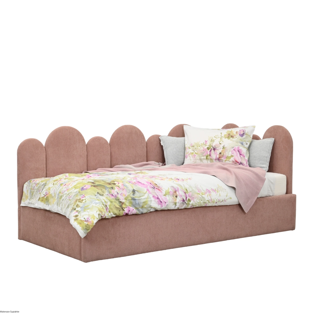 Łóżko tapicerowane FLOW to wyjątkowe łóżko do sypialni i pokoju młodzieżowego, które łączy komfort, funkcjonalność i nowoczesny design. Dzięki narożnemu, zaokrąglonemu wezgłowiu stwarza przytulną strefę do czytania, nauki i relaksu. Wybierz wersję z pojemnikiem na pościel lub bez, dopasowując łóżko do potrzeb swojego wnętrza.