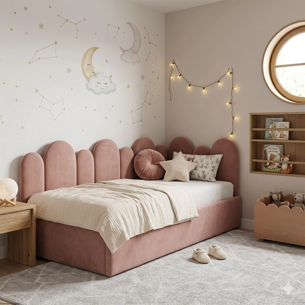 - Narożne, miękkie wezgłowie – chroni ścianę i ramiona, idealne do czytania i relaksu.