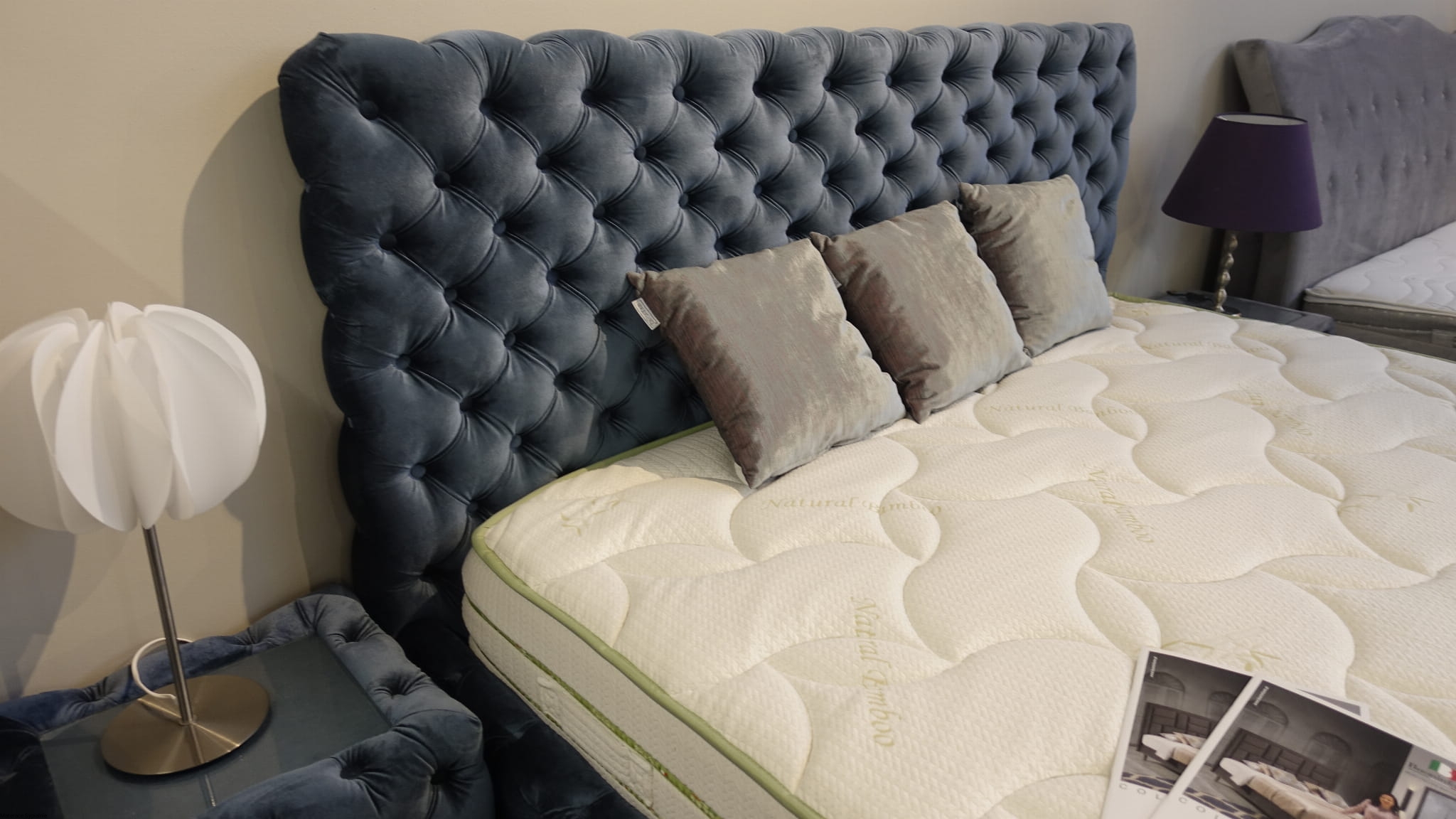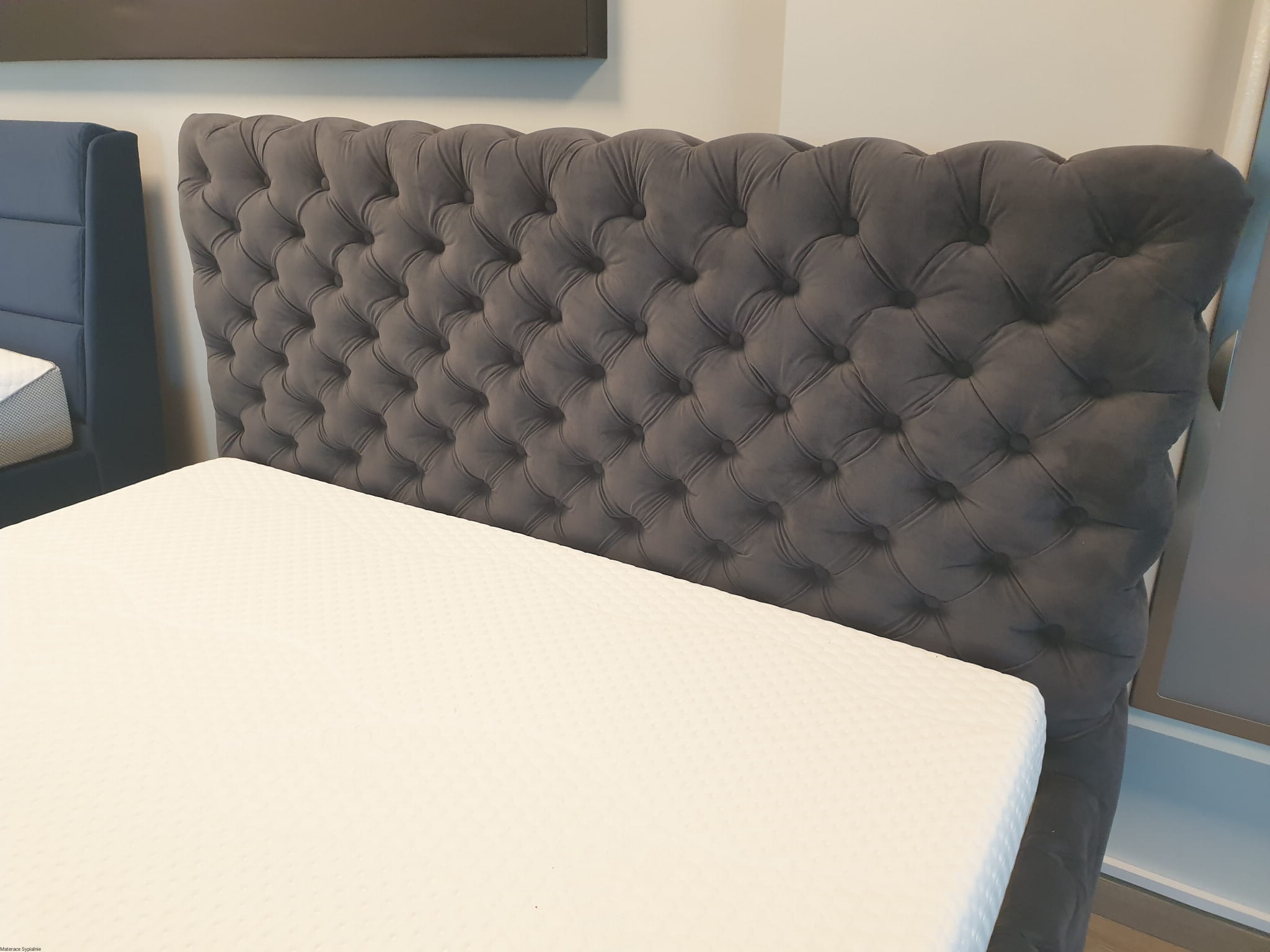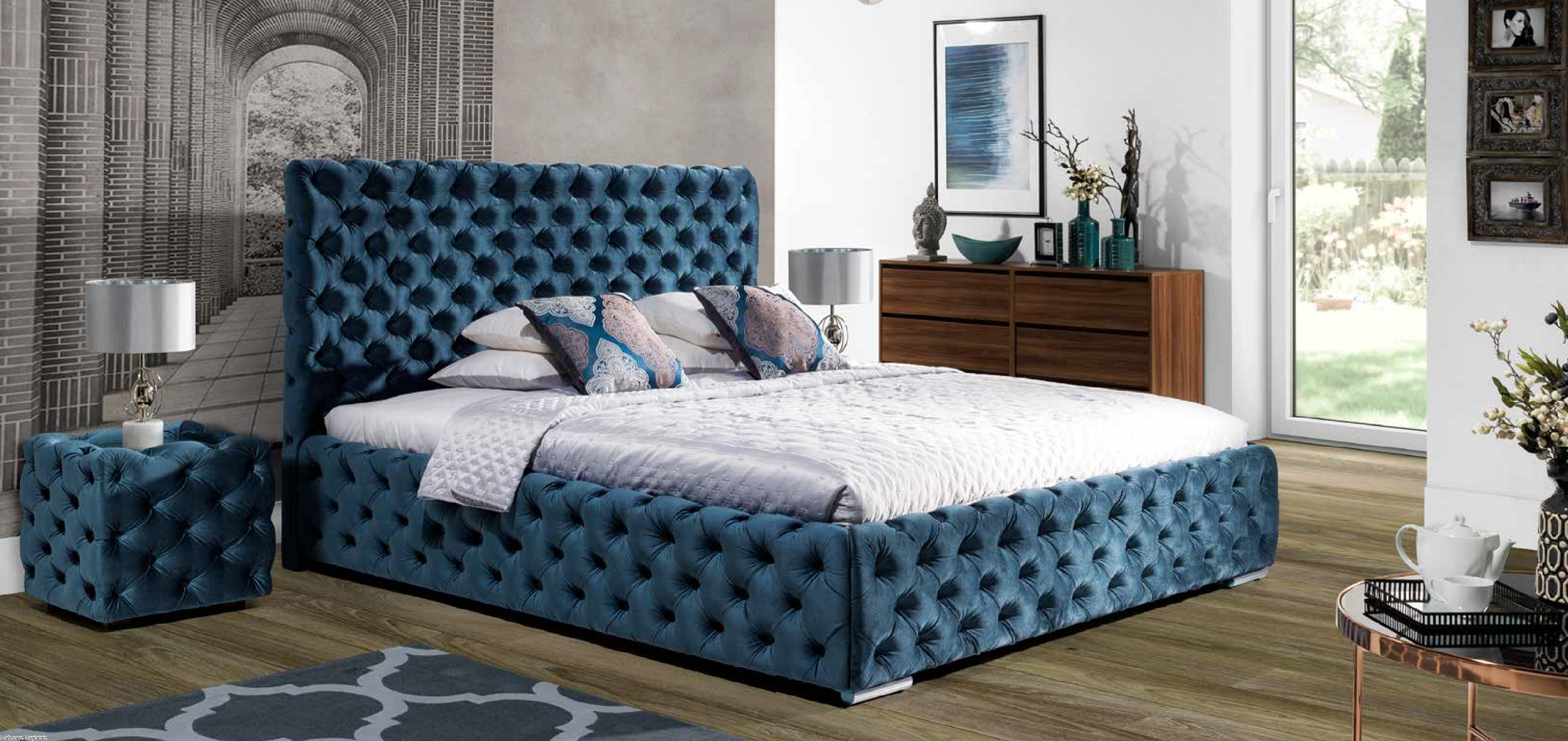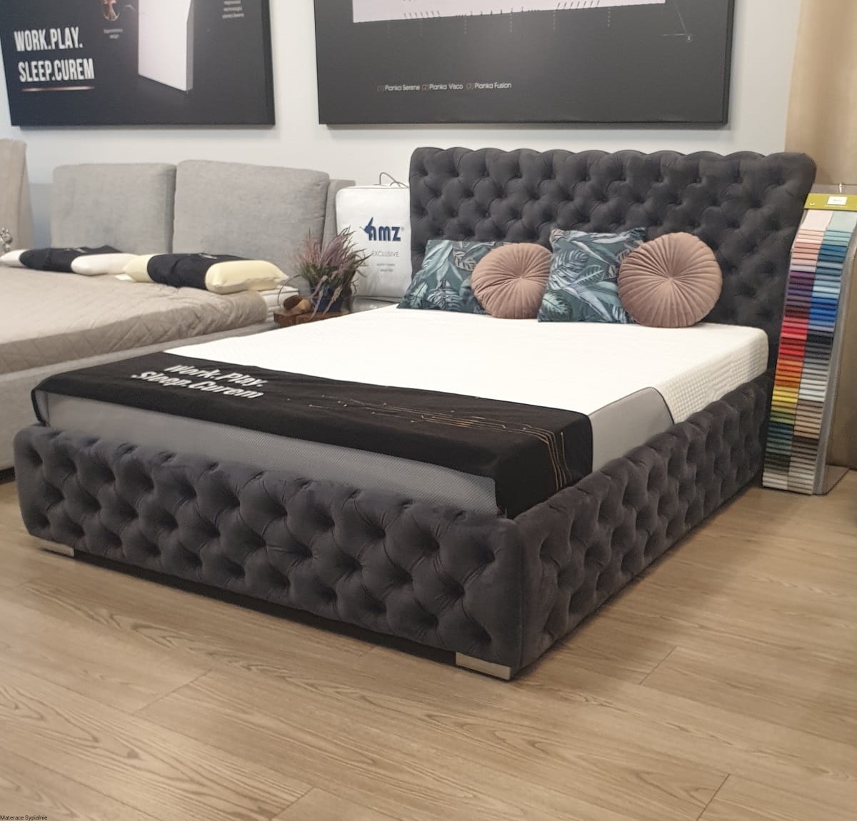 Łóżko Hawana – luksusowe, głęboko pikowane łóżko z wysokim zagłówkiem. Idealne do stylowych sypialni, łączące elegancję, komfort i precyzję wykonania.