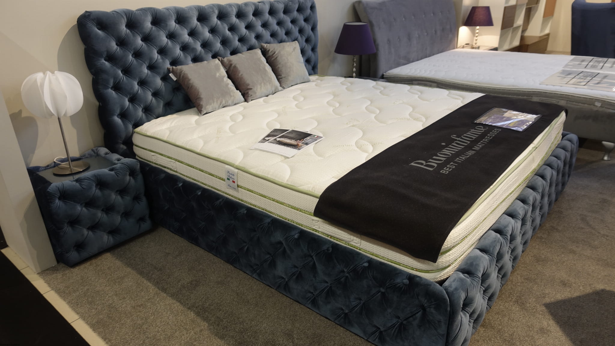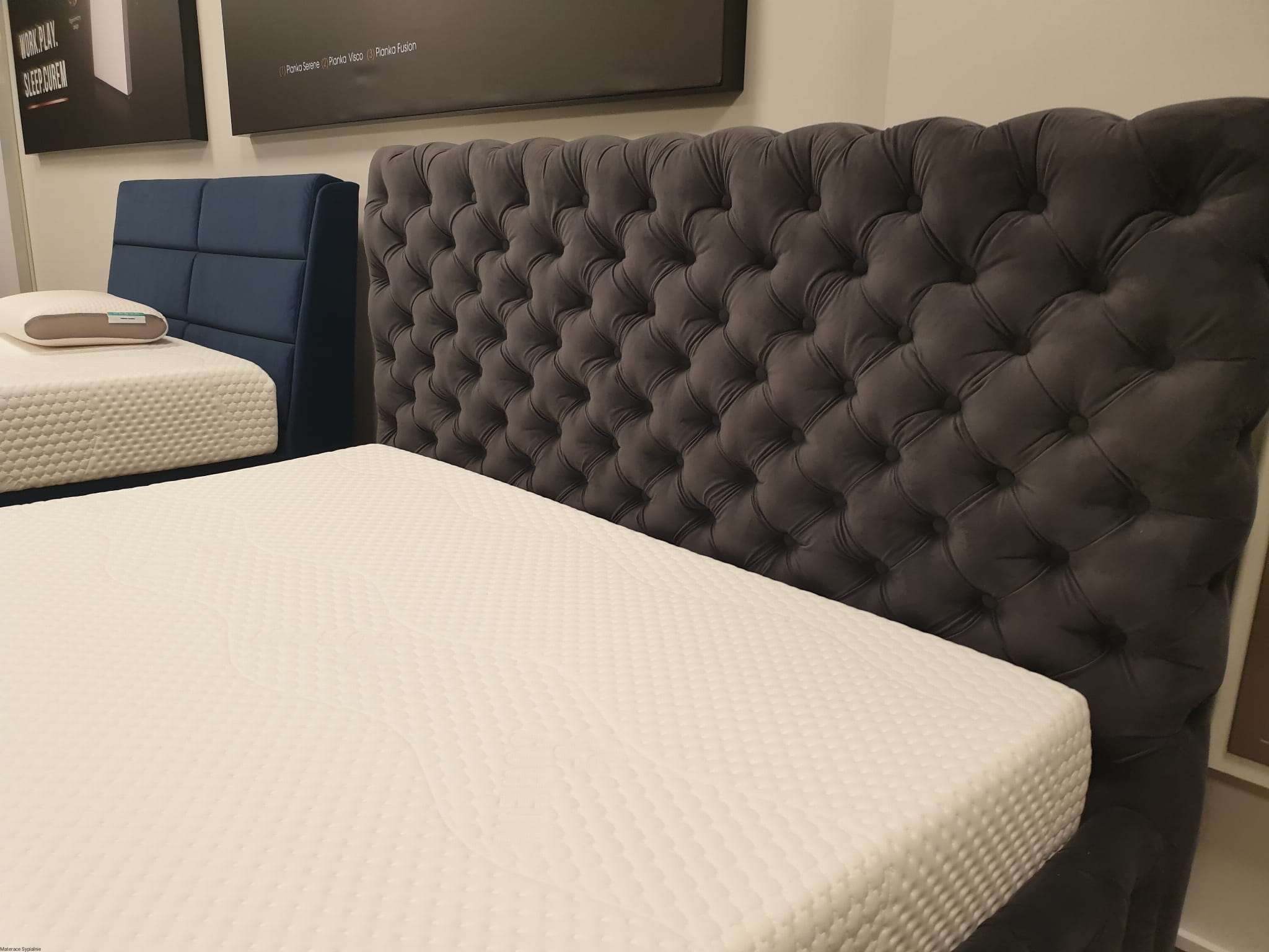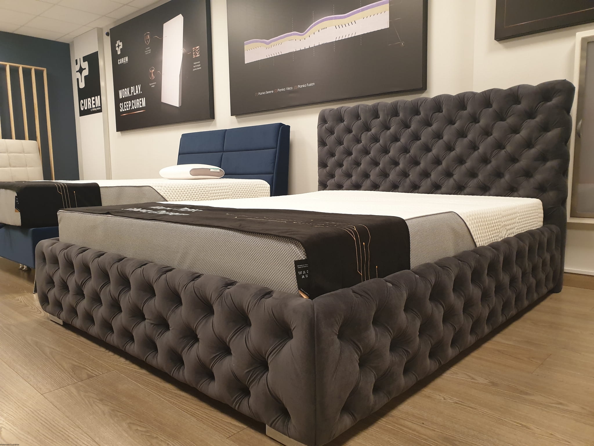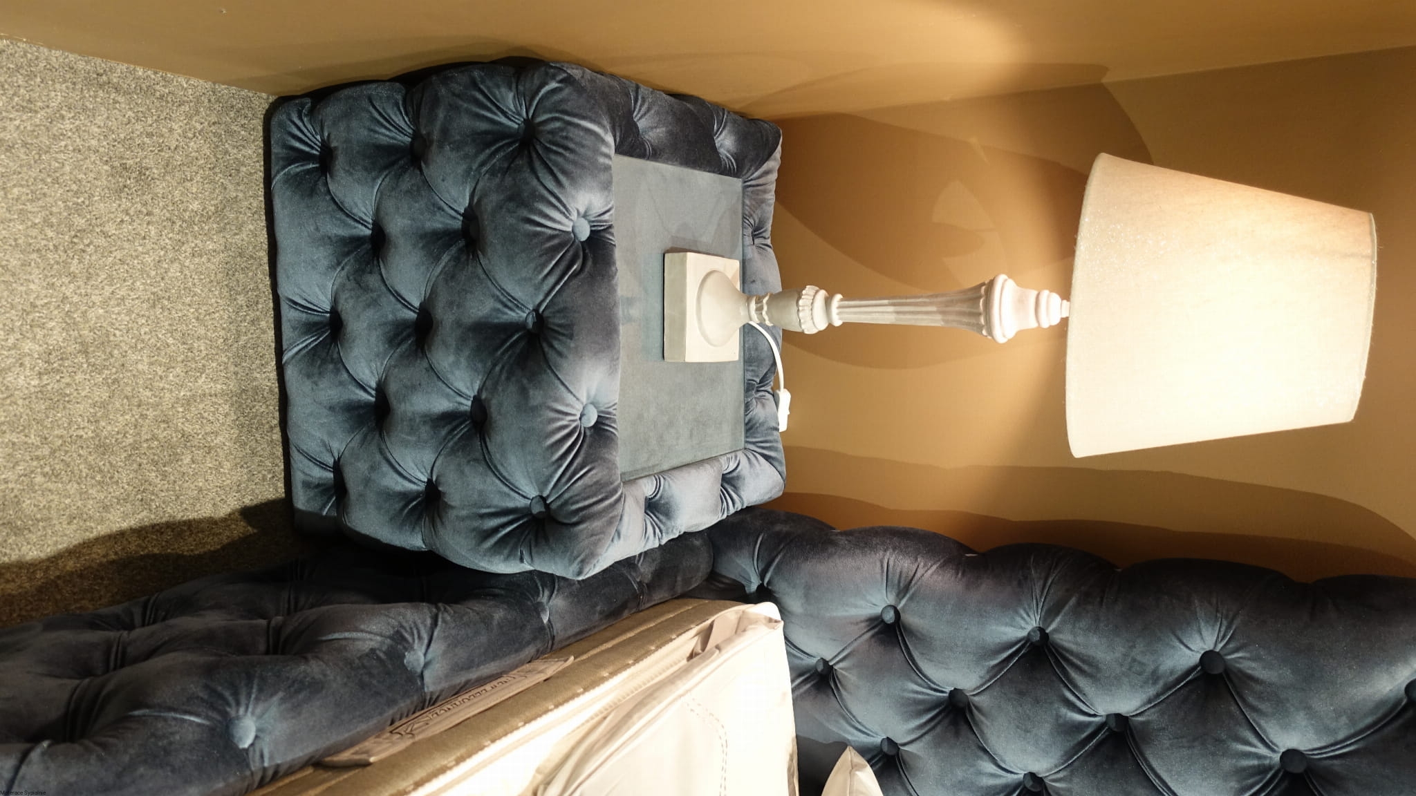 Łóżko Hawana – luksusowe, głęboko pikowane łóżko z wysokim zagłówkiem. Idealne do stylowych sypialni, łączące elegancję, komfort i precyzję wykonania.