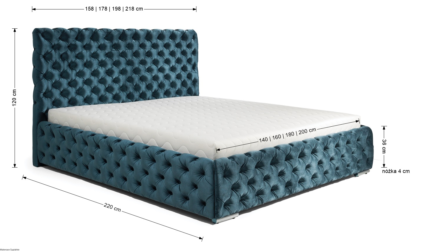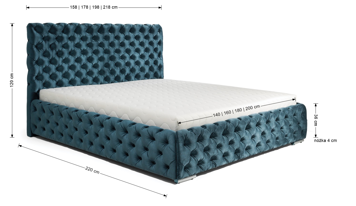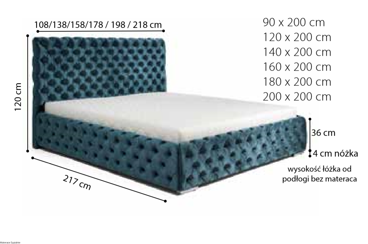 Powierzchnia spania: 140×200, 160×200, 180×200, 200×200 cm