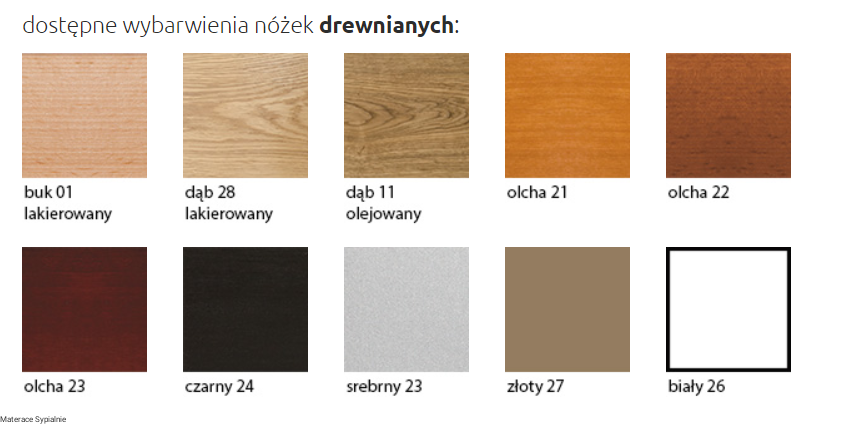 możliwość wyboru nóżek i wybarwienia drewna