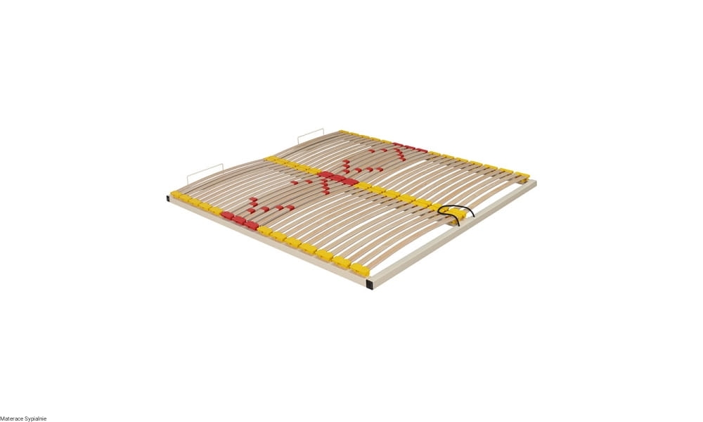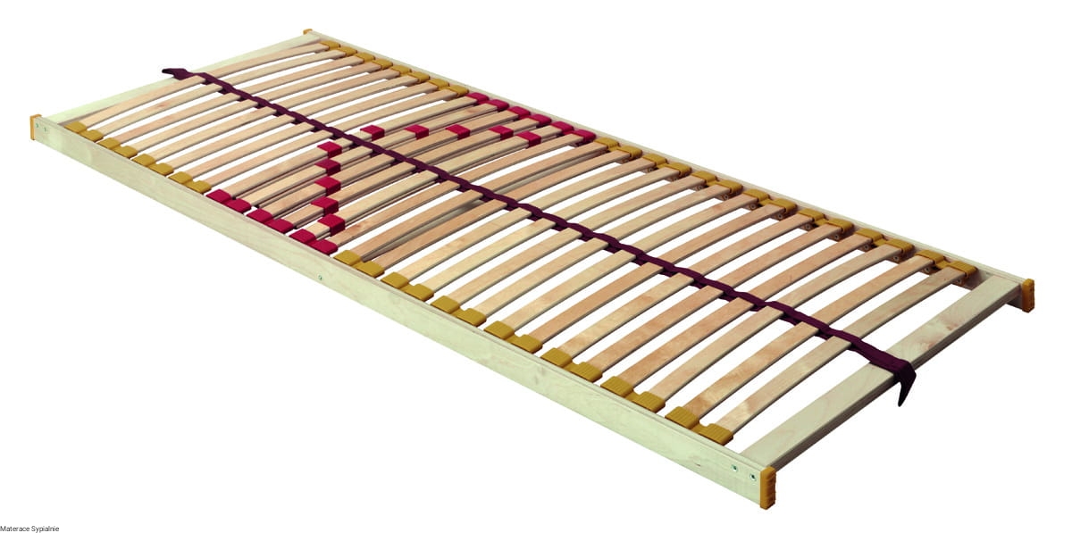 Stelaż Komfort L38 – podwójna belka środkowa, 30 elastycznych lameli (38 mm) z możliwością regulacji twardości i uchwyty typu duoflex, wysokość stelaża: 70 mm, zapewniające optymalne podparcie materaca.