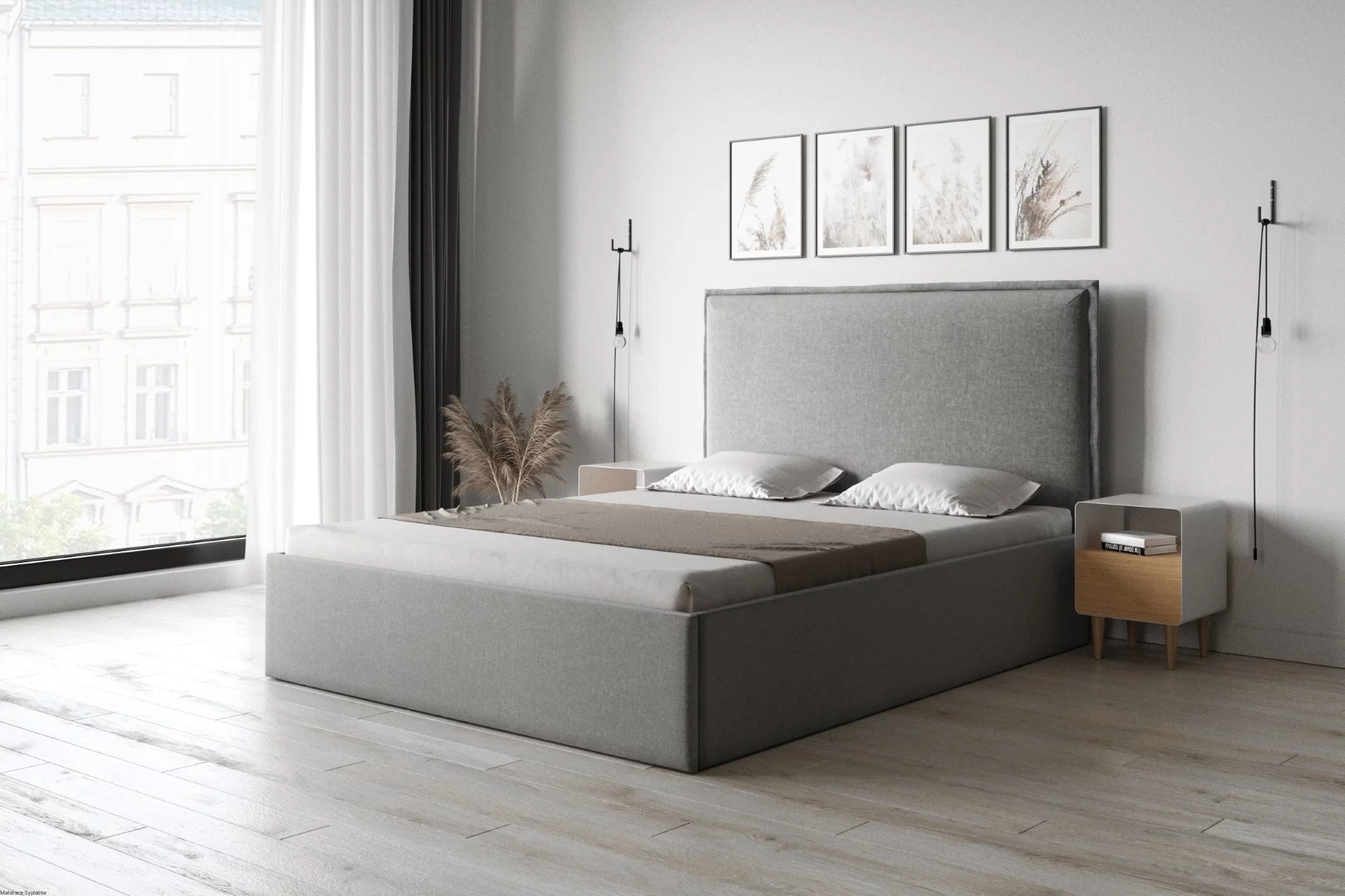 Przedstawiamy klasyczne łóżko tapicerowane z jednolitym, gładkim zagłówkiem. Dookoła zagłówka znajduje się delikatna ramka, która dodaje elegancji. Oprócz tego, że zachwyca wyglądem, zachwyci też swoją stabilną i wytrzymałą budową i idealnie wpasuje się do każdej sypialni.