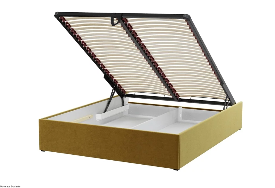 -dwa stelaże niezależne zapewniają brak przenoszenia przez materac drgań4. Korpus z pojemnikiem na pościel, rama metalowa i stelaż elastyczny