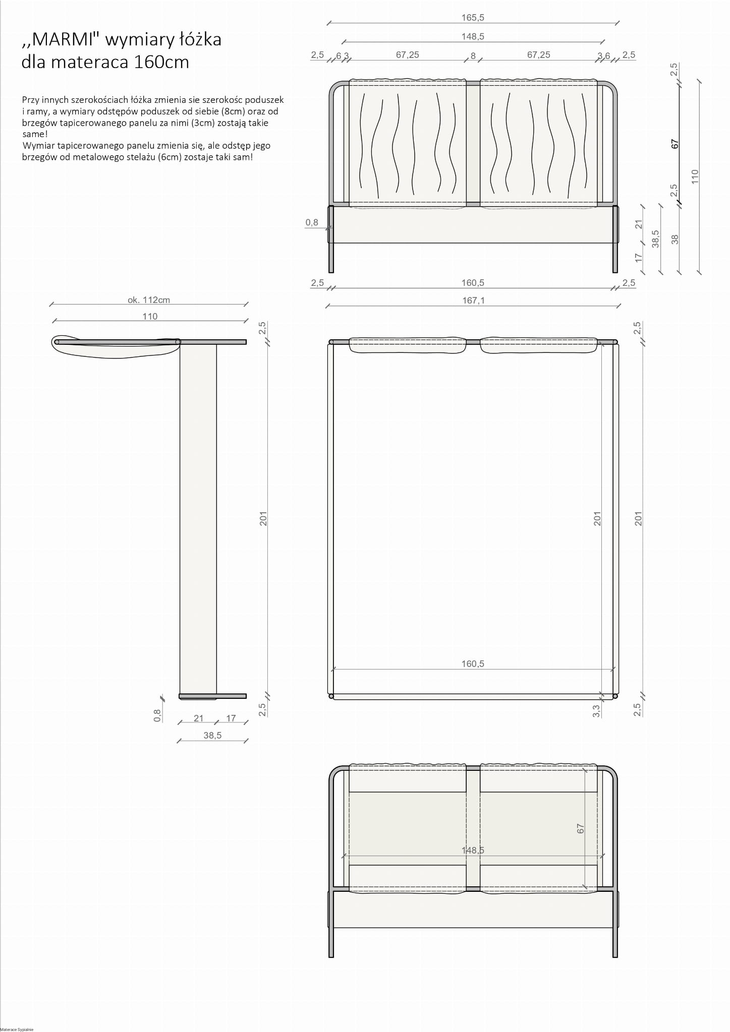 Cena łóżka nie obejmuje materaca – pomoc w jego doborze dostępna w salonie lub telefonicznie