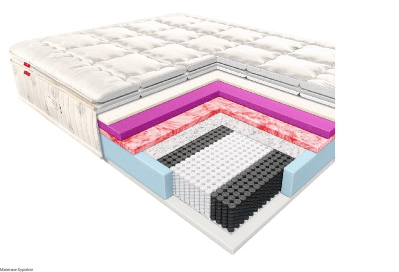 Bazą materaca są sprężyny kieszeniowe typu multipocket, czyli 500 małych kieszonek ze sprężynami na każdym metrze kwadratowym materaca. W praktyce oznacza to wysoką elastyczność punktową – doskonałe dopasowanie do ciała, wyłącznie w miejscach nacisku. Technologia ta zapewnia jednoczesne wsparcie i odciążenie ciała, a przez to modelowanie się do jego fizjologicznych kształtów. Odpowiednie dopasowanie gwarantuje spokojny sen i zdrowe ułożenie kręgosłupa. Sprężyny kieszeniowe to doskonała opcja dla par, ponieważ nie przenoszą drgań wywołanych przez ruchy jednej osoby na jej partnera. To zapewnia niezakłócony sen każdemu użytkownikowi materaca.