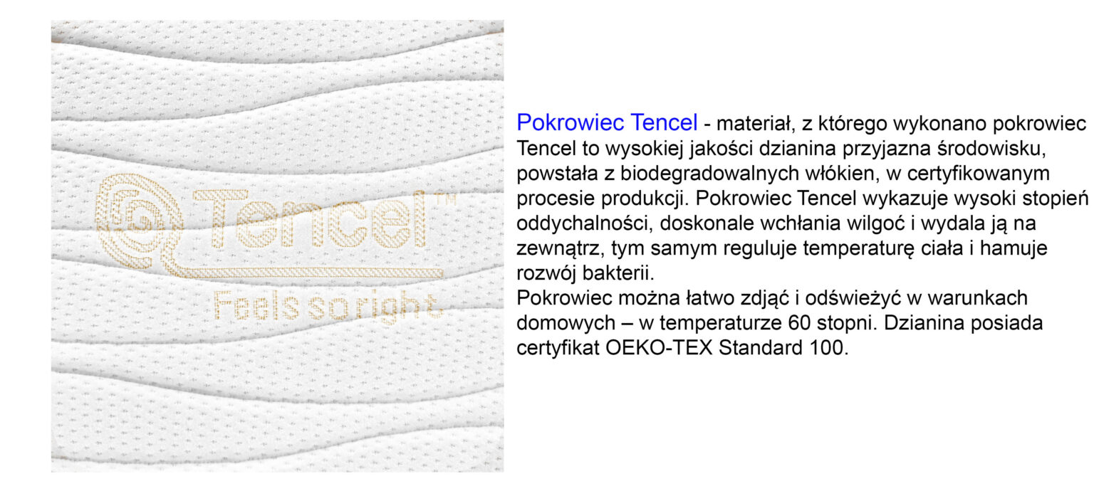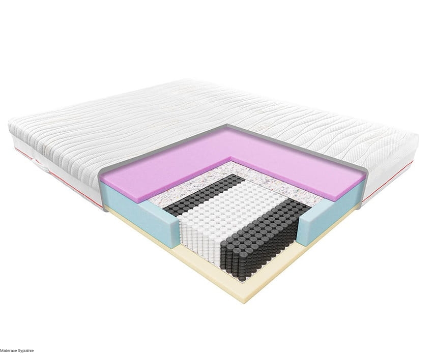 Warstwę sprężyn uzupełniają bardzo elastyczne pianki, zwiększające odczucie komfortu. Sprężysta pianka wysokoelastyczna gwarantuje wygodę, stabilne podparcie oraz wysoki stopień oddychalności. Z kolei pianka termoelastyczna znajdująca się z drugiej strony materaca zapewnia efekt delikatnego otulenia poprzez dopasowanie się do kształtów ciała pod wpływem temperatury i obciążenia. Jej struktura sprawia, że ciało nie jest poddawane żadnym naciskom, w efekcie nic nie blokuje krążenia i organizm jest lepiej ukrwiony.