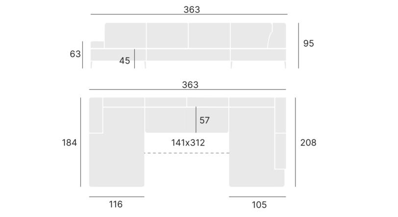 Narożnik Bizante o wymiarach 363/ 208 cm to wyrafinowane połączenie nowoczesnej formy i wyjątkowego komfortu.
