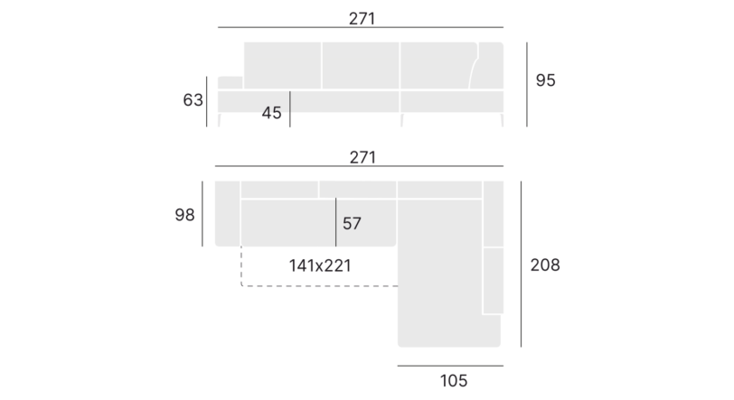 Narożnik Bizante o wymiarach 271/ 208 cm to wyrafinowane połączenie nowoczesnej formy i wyjątkowego komfortu.