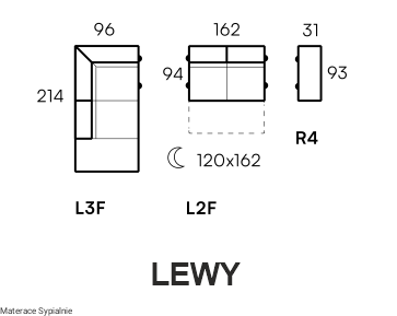 - powierzchnia spania 221/120 cm