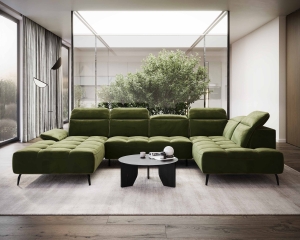 arożnik Manson to kwintesencja elegancji w nowoczesnym wydaniu, emanujący stylem i funkcjonalnością. Jego głęboko pikowane wykończenie nadaje mu wyjątkowy charakter, dodając jednocześnie subtelny akcent luksusu do każdego wnętrza. Ruchome zagłówki zapewniają elastyczność oraz możliwość dostosowania do własnych preferencji, podkreślając jednocześnie nowoczesny design. Elektrycznie wysuwane siedzisko stanowi innowacyjne rozwiązanie, umożliwiając rozłożenie sofy w celu maksymalnego relaksu i wygodnego wypoczynku. Wysoki komfort użytkowania to gwarancja zadowolenia i doskonałego wrażenia podczas codziennego użytkowania.
