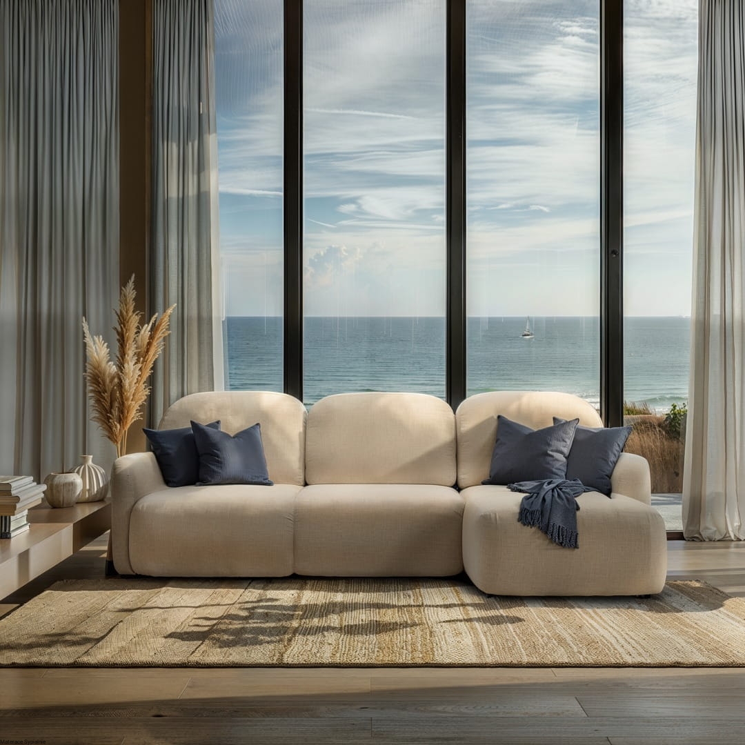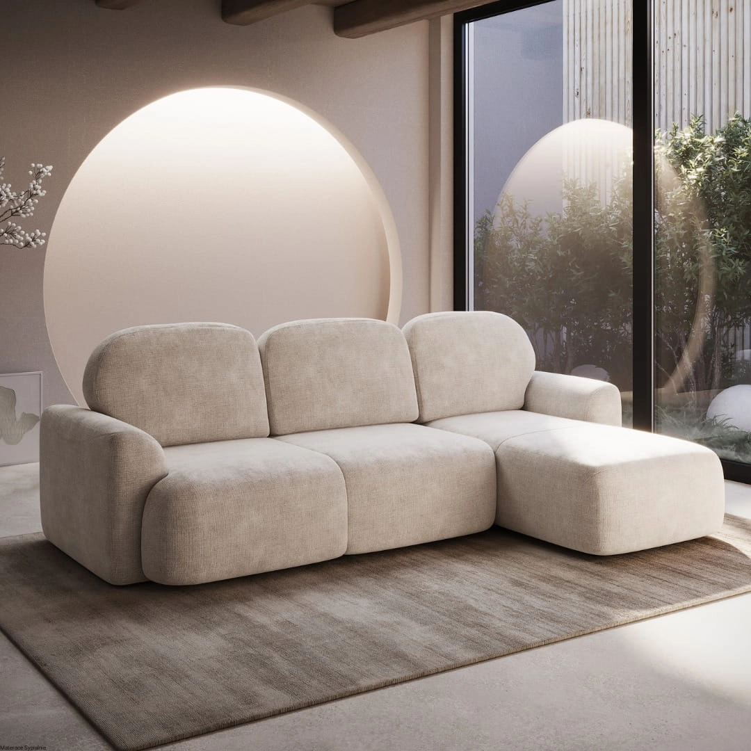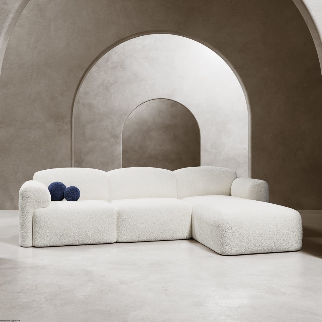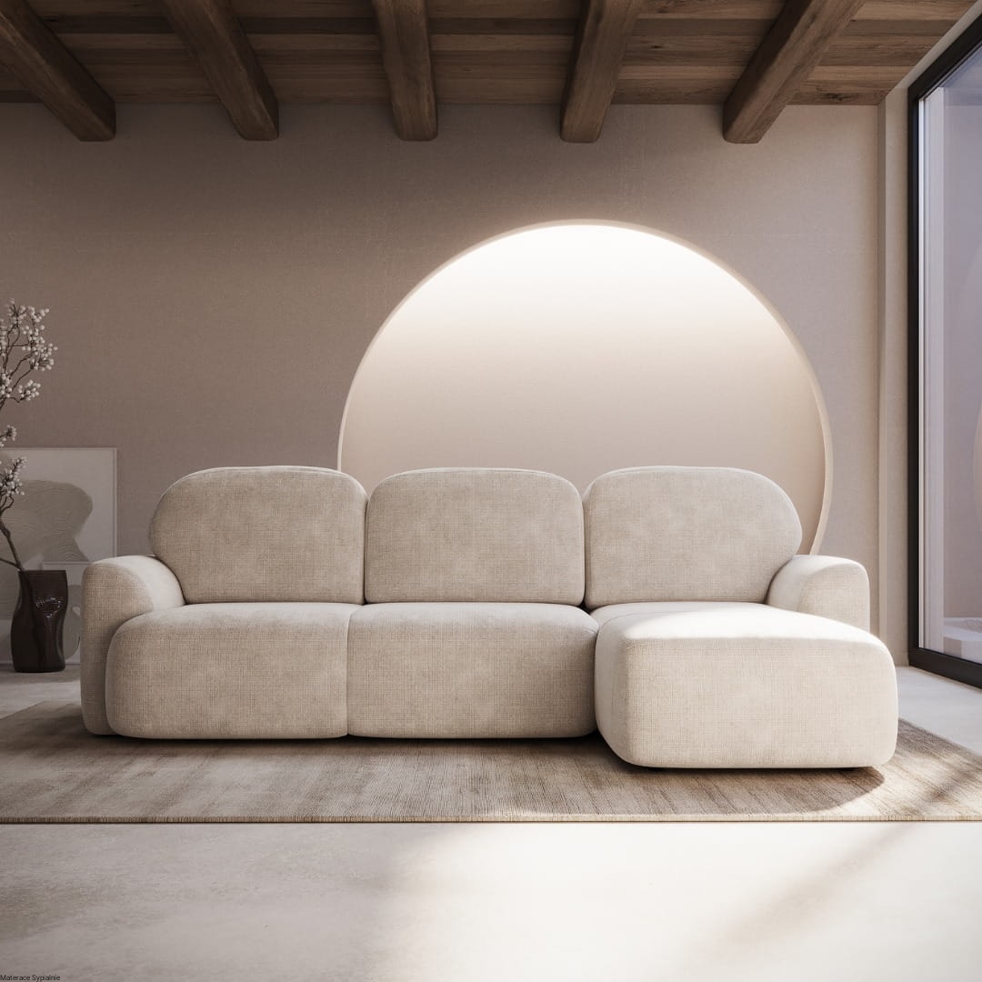 Narożnik Nabu to nie tylko doskonale odzwierciedla panujące trendy w designie, ale także stanowi funkcjonalne rozwiązanie. Charakterystyczne dla tego modelu są jego obłe kształty, które nadają mu wyjątkowego uroku. Zaokrąglone poduszki oraz podłokietnik harmonijnie współgrają ze sobą, tworząc spójną i przytulną bryłę, która doskonale wpisuje się w nowoczesne aranżacje.