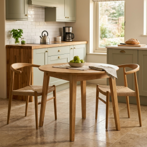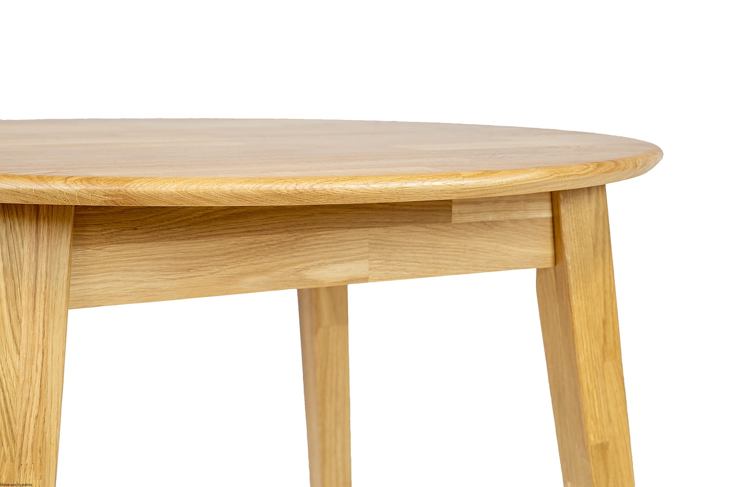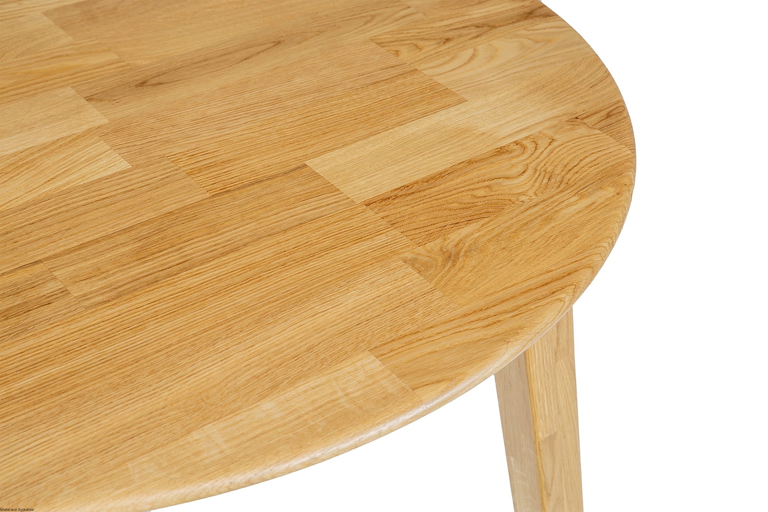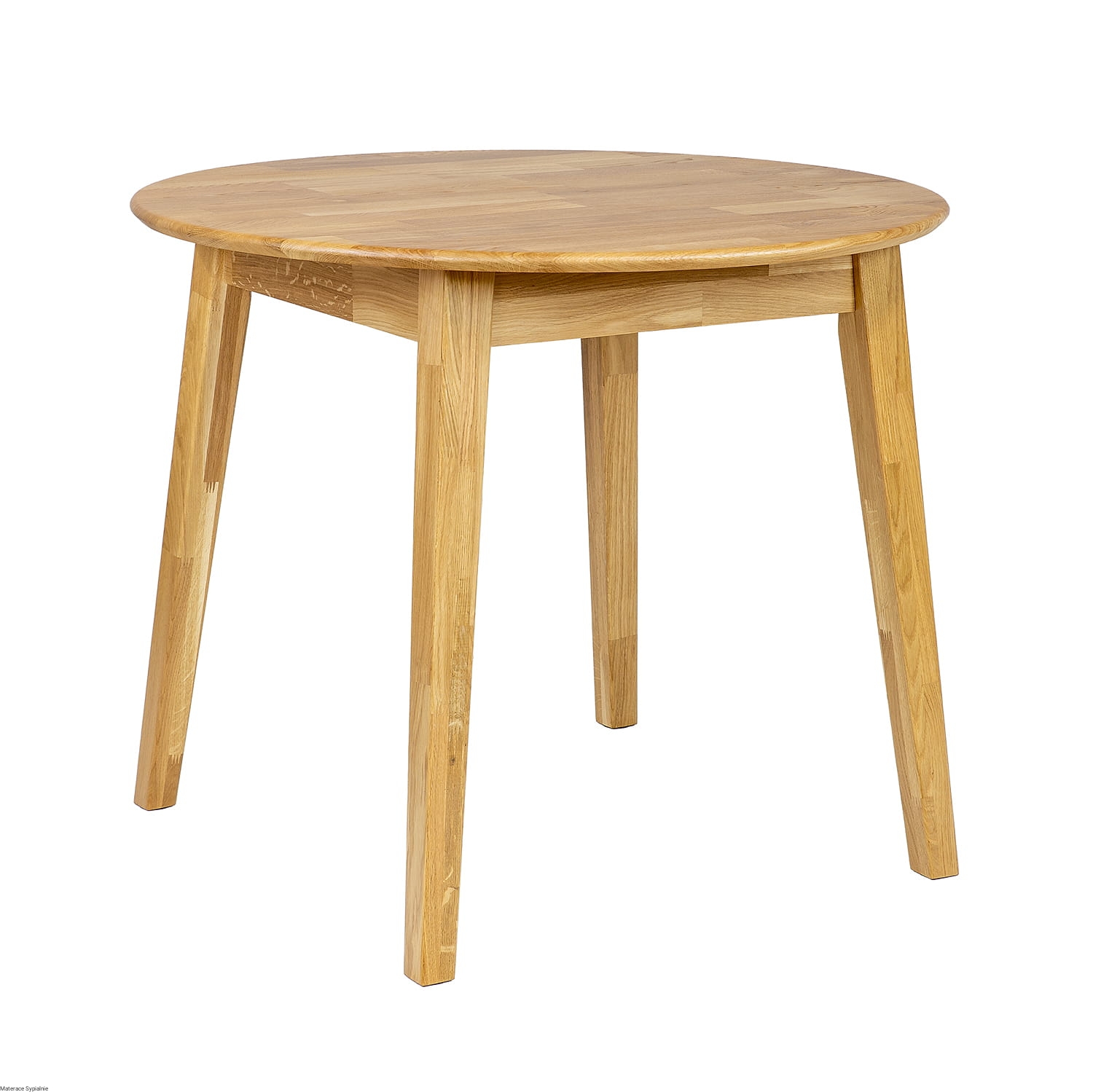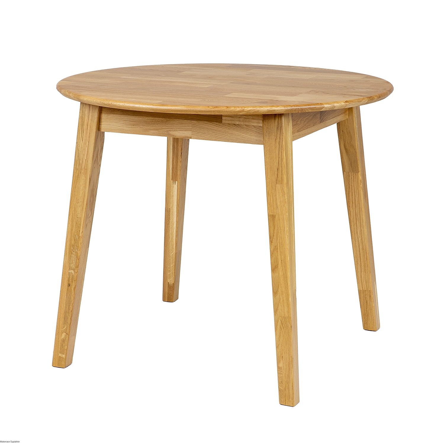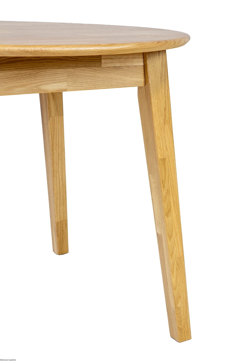 Stół ST362 wykonano z litego drewna dębowego, co gwarantuje stabilność i długowieczność mebla. Okrągły blat o grubości 2 cm wyposażono w delikatnie zaoblone krawędzie, które podkreślają elegancję stołu i zapewniają bezpieczeństwo użytkowania. Skośne nogi, lekko zwężane ku dołowi, nadają stołowi lekkości i harmonii proporcji.
