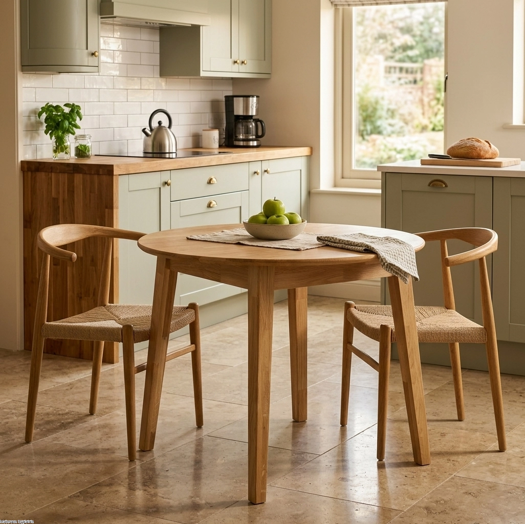 Stół ST362 to elegancki okrągły stół z litego drewna dębowego o designerskim, minimalistycznym wyglądzie. Blat 2 cm z zaoblonymi krawędziami i skośne nogi nadają lekkości konstrukcji. Doskonały do jadalni i salonu, pasuje do stylu klasycznego i nowoczesnego, tworząc ciepłą, rodzinną atmosferę.