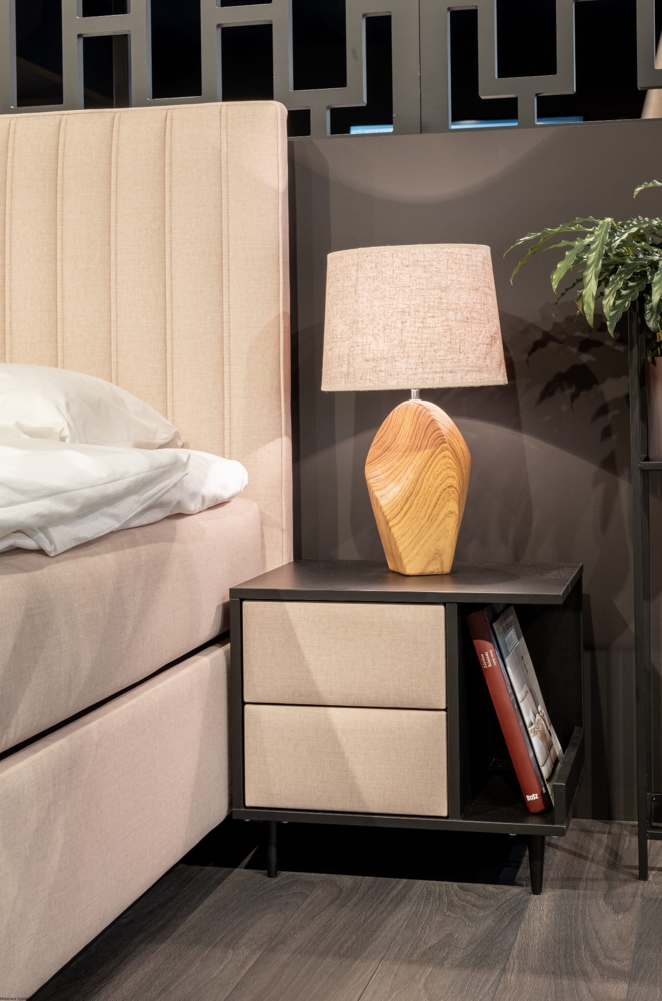 Dzięki szerokiemu wyborowi tkanin tapicerskich w różnych grupach cenowych, stolik można łatwo dopasować do stylu sypialni. Opcje obejmują tkaniny łatwoczyszczące, przyjazne zwierzętom, oddychające, trudnopalne oraz przyjemne w dotyku.