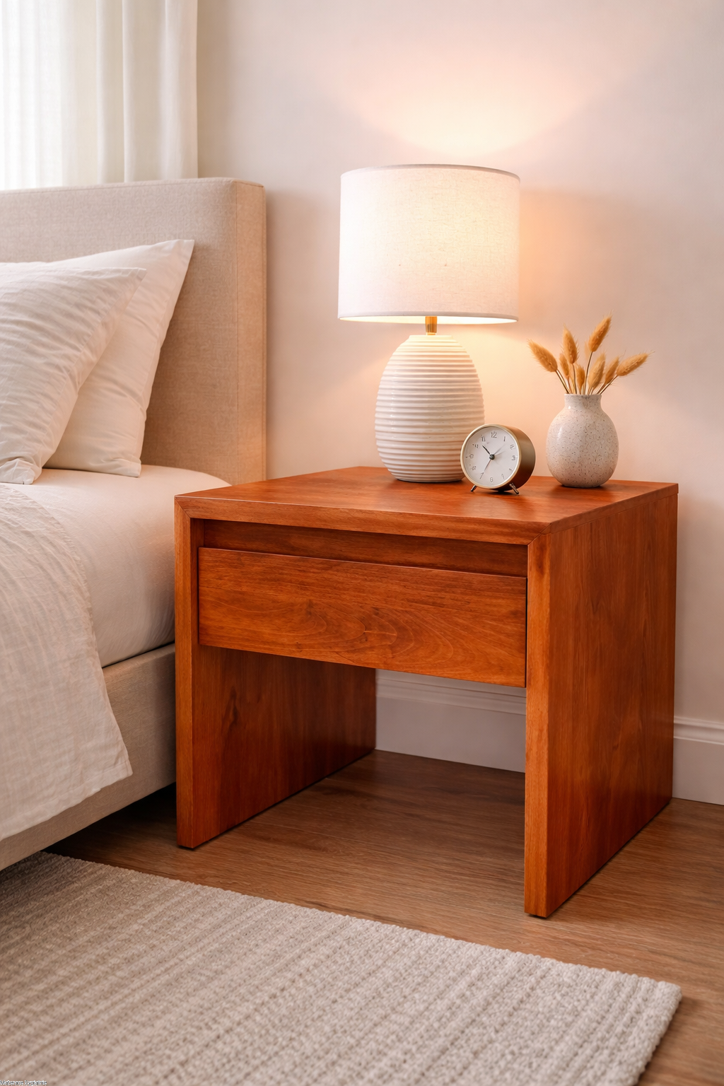 Szafka nocna M-Form 1S to nowoczesny stolik nocny z litego drewna, który łączy estetykę naturalnych materiałów, precyzyjne wykonanie oraz praktyczne rozwiązania do przechowywania. Dzięki jednej funkcjonalnej szufladzie z cichym domykiem model ten sprawdzi się idealnie w mniejszych przestrzeniach oraz w sypialniach urządzonych w stylu minimalistycznym.