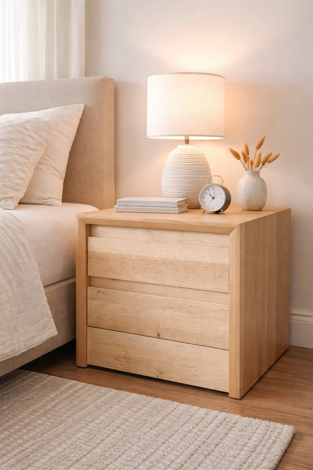 Szafka nocna M-Form 2S to funkcjonalna szafka nocna drewniana, która łączy wysokiej jakości lite drewno, precyzyjne wykonanie oraz praktyczne rozwiązania do przechowywania. Model wyposażony w dwie pojemne szuflady pozwala utrzymać idealny porządek w sypialni, jednocześnie podkreślając jej elegancki charakter.