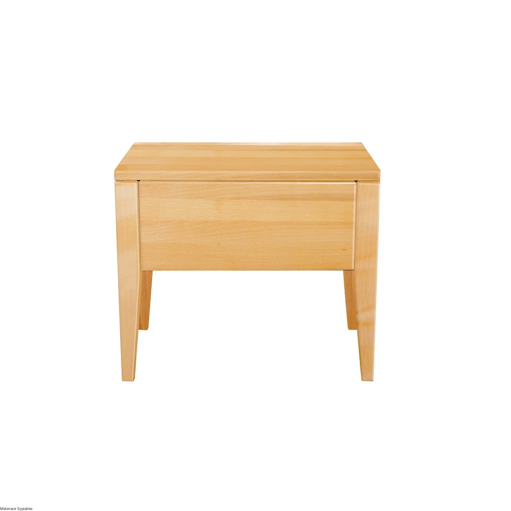 Prosta szafka nocna SN130 powstała z myślą o klasycznych wnętrzach. Wykonana z litego drewna bukowego. Charakteryzuje ją prostota i ponadczasowość. Nietypowe nóżki szafki dodają jej uroku. Dzięki temu szafka idealnie sprawdzi się również w modnych, nowoczesnych wnętrzach. Wyposażona w praktyczną szufladę, która pomieści podręczne bibeloty.