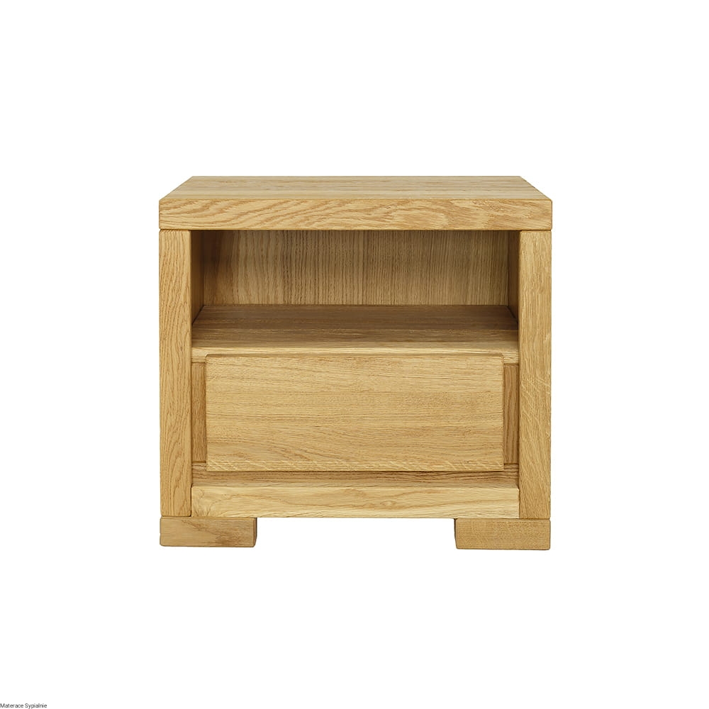 Klasyczna i prosta szafka nocna SN210, wykonana została z litego drewna dębowego. Zaprojektowana w nowoczesnym, minimalistycznym stylu. Pojemna i praktyczna. Stabilna bryła osadzona została na masywnych nóżkach, które pełnią również funkcję estetyczne. Jej atutem jest wyraźnie widoczne usłojenie naturalnego drewna, które ociepli wnętrze sypialni i nada jej niepowtarzalnego uroku.