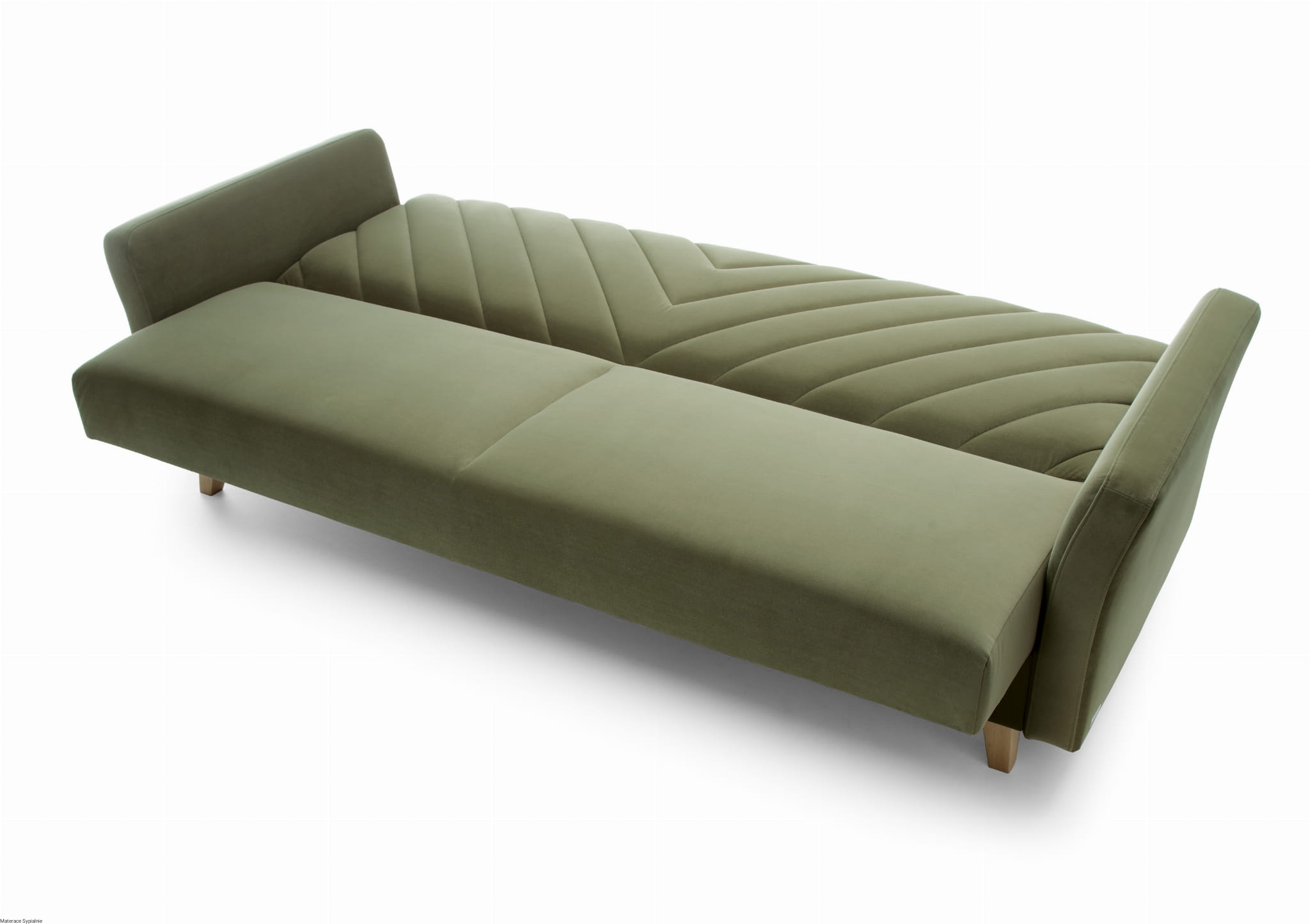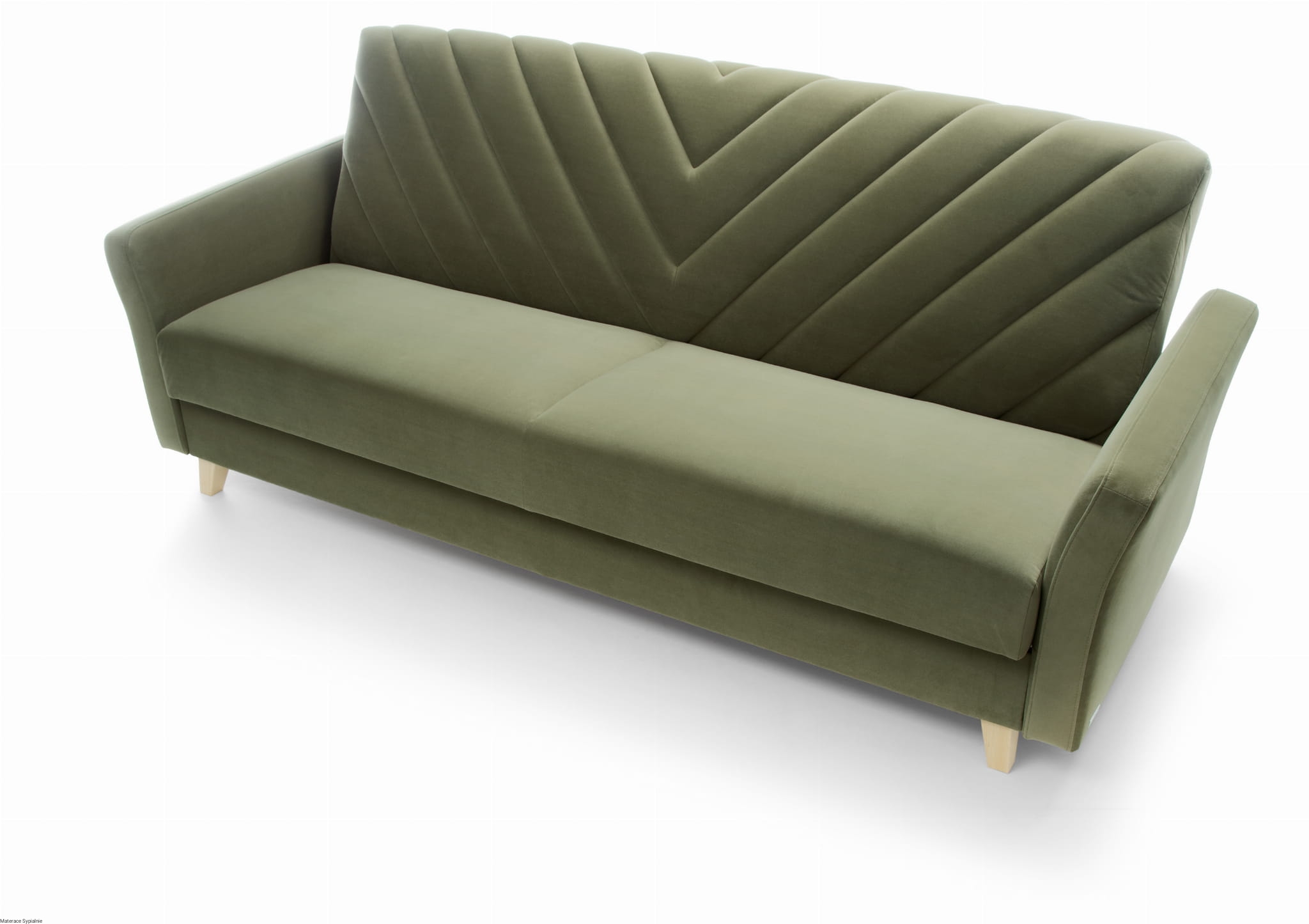 Wersalka rozkłada się w prosty, doskonale znany sposób, tzn. poprzez uniesienie siedziska do momentu usłyszenia charakterystycznego kliknięcia, zastosowanego w tym meblu mechanizmu. Dodatkowym ułatwieniem jest tzw. „automat od ściany”. Oznacza to, że nie musimy odsuwać mebla od ściany, aby go rozłożyć. Specjalny mechanizm odchyli na chwilę ruchomą część kanapy ku przodowi.