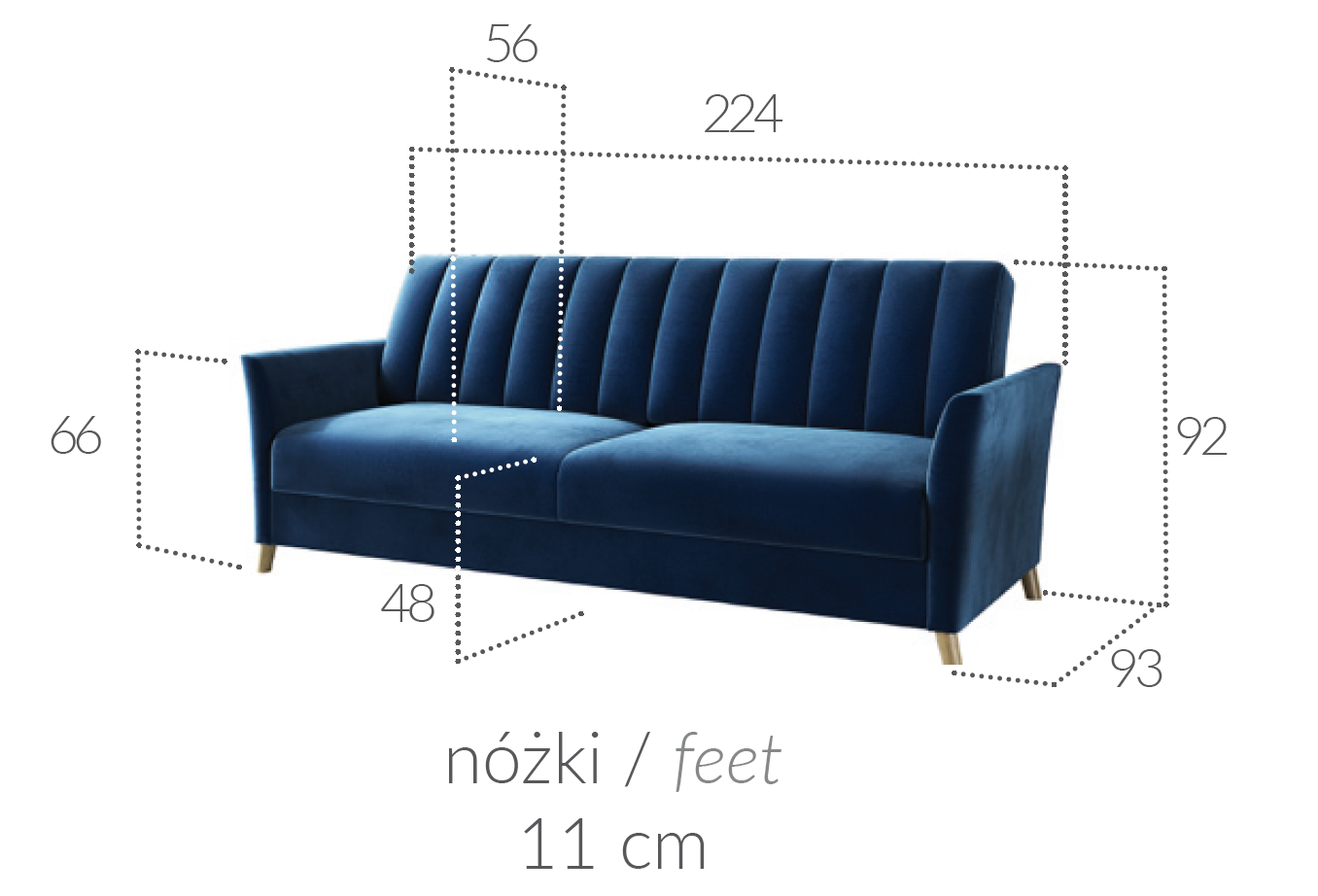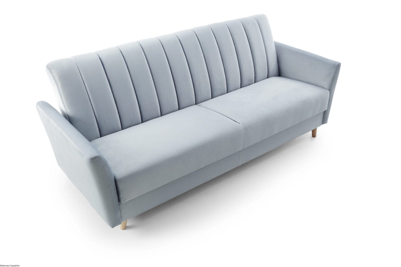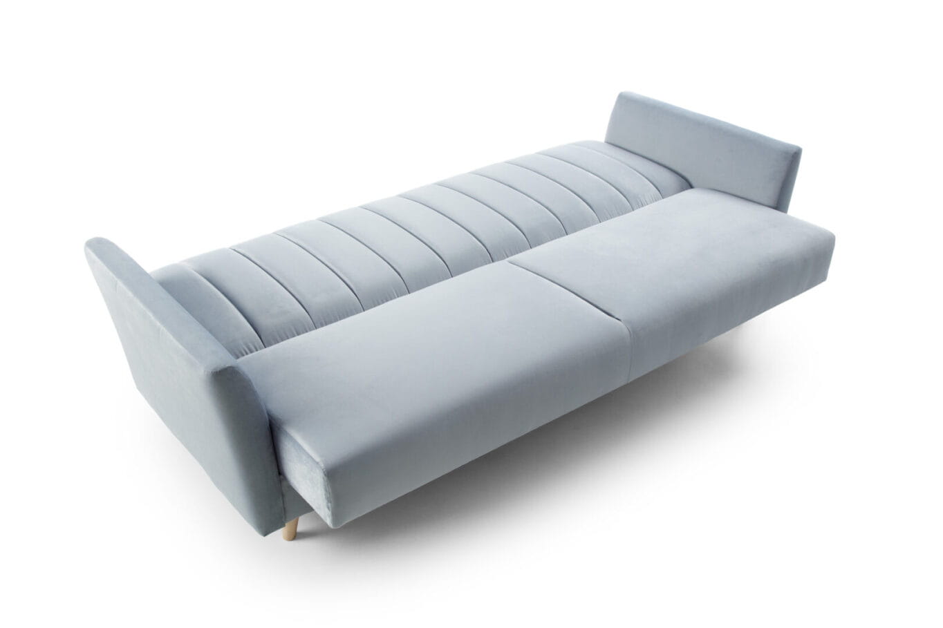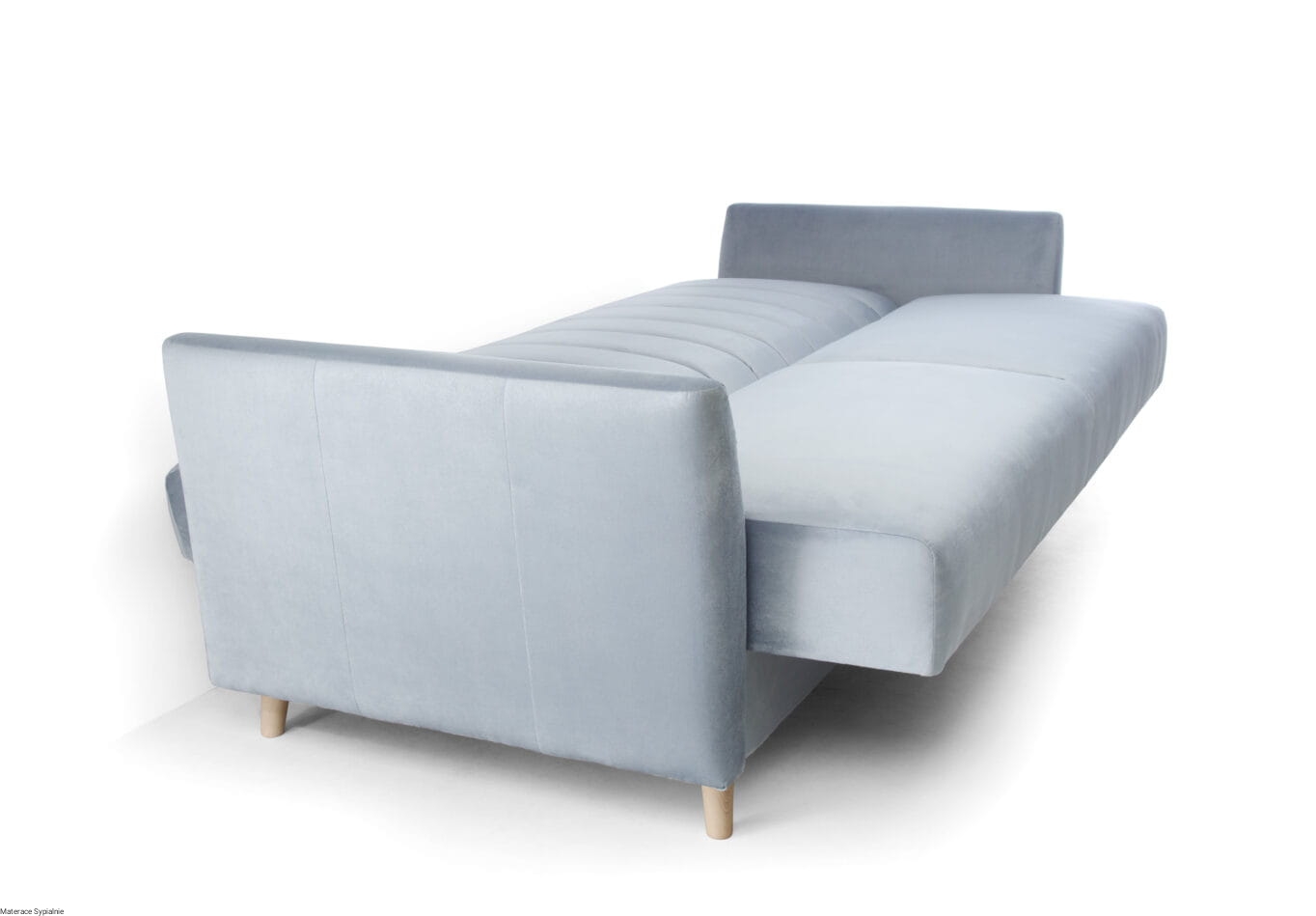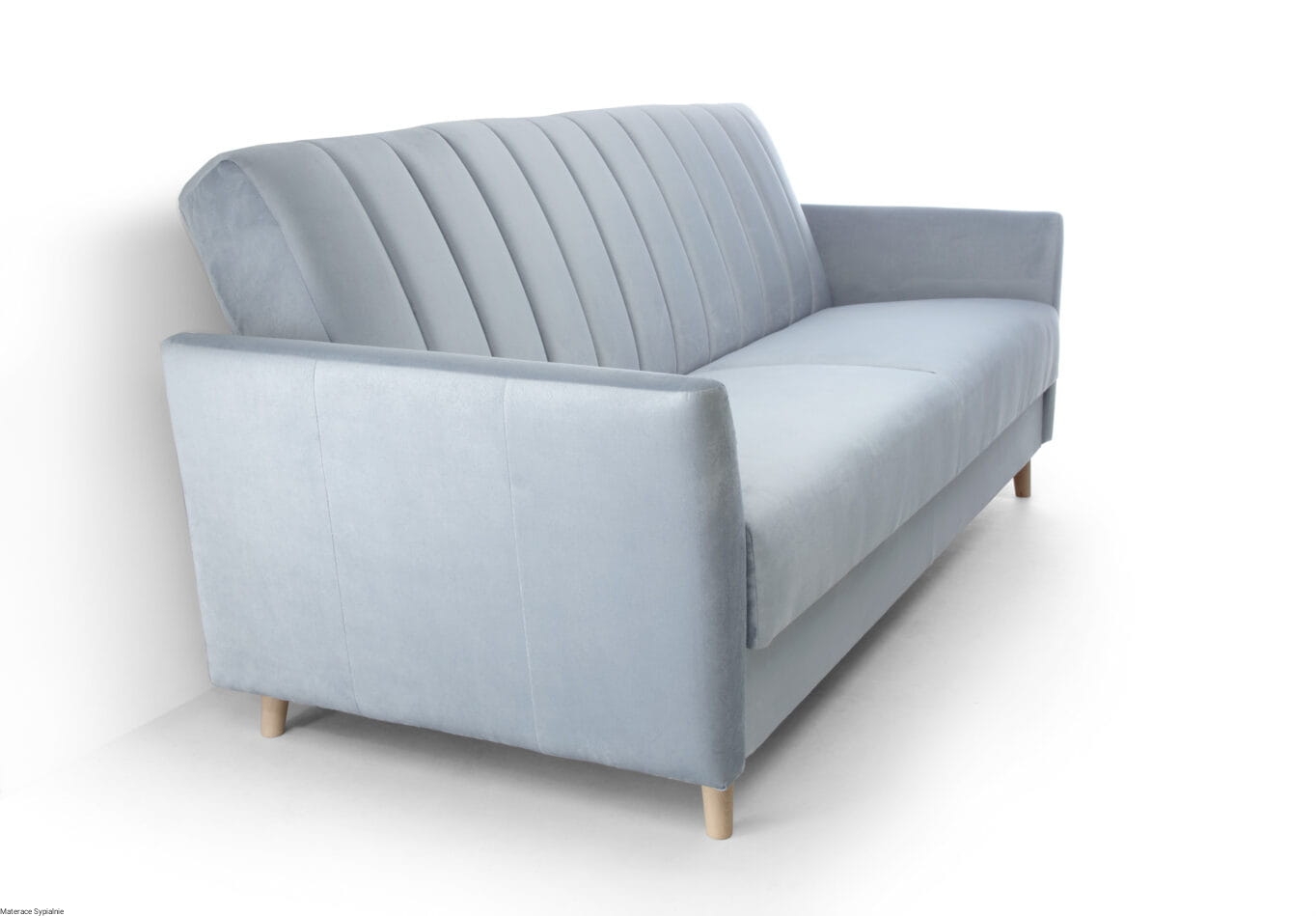 Bardzo komfortowa funkcja spania – rozkładana przy pomocy tzw. automatu „od ściany”, tzn. bez konieczności odsuwania oparcia od ściany podczas tej czynności. To rozwiązanie zdecydowanie wyróżnia Nadię spośród innych wersalek. Powierzchnia spania 195×120 cm, cała posiada zbliżoną sprężystość. Wersalka wyposażona w duży pojemnik na pościel.