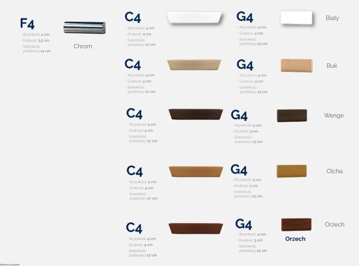 - wysokość nóżki 4 cm możliwość zmiany - kontakt z salonem